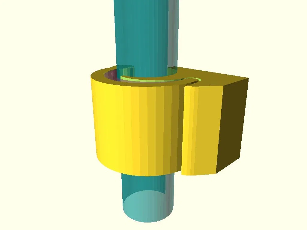 Đây là một đối tượng cơ sở: bạn có thể remix lại (union) nó với thứ bạn muốn gắn vào thanh tròn (hoặc gắn thanh tròn vào đó). Ví dụ, nếu bạn gắn thứ gì đó vào các thanh tròn trên máy in 3D, hoặc muốn tháo lắp nhanh thanh tròn (giá đỡ cuộn dây?), v.v.