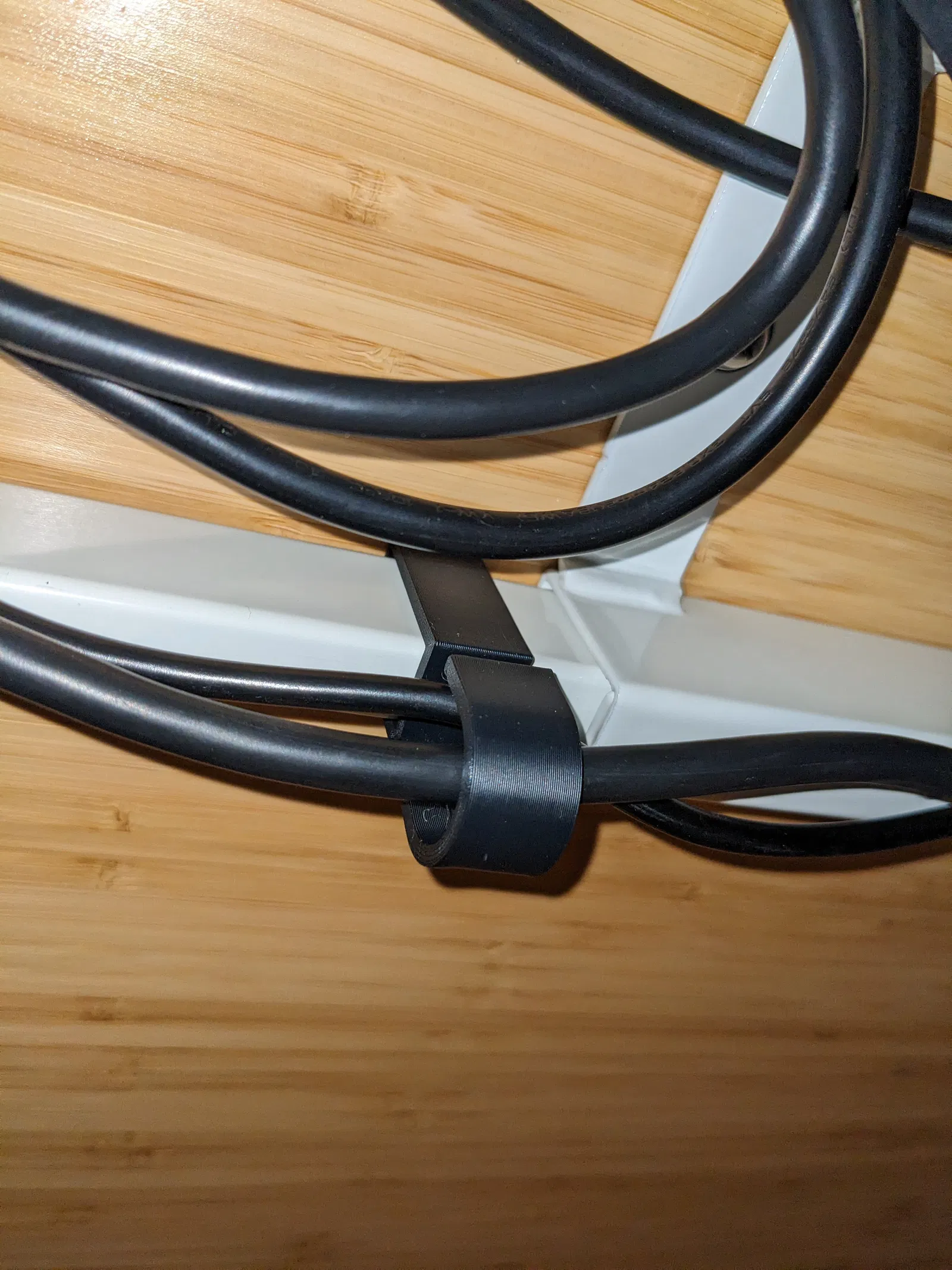 Cái kẹp dây cáp này gắn dưới bàn đứng Jarvis của Fully, giúp luồn dây cáp qua để sắp xếp gọn gàng. Nó vừa với thanh dầm giữa bàn, có kích thước 15.7mm x 31mm.