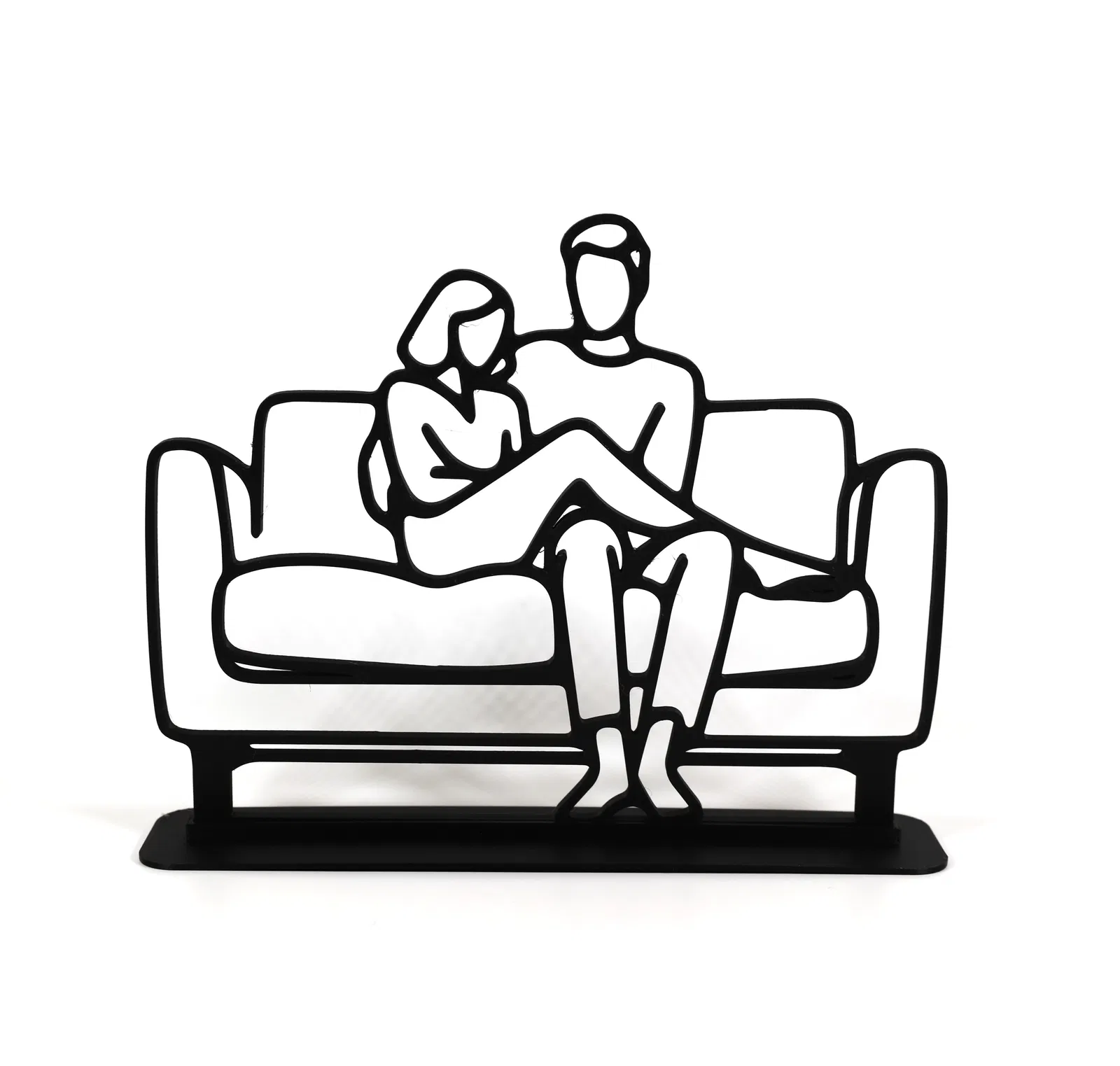 Mô hình in 3D nghệ thuật đường nét tối giản khắc họa khoảnh khắc cặp đôi ngồi cạnh nhau trên ghế sofa. Thiết kế thanh lịch, tinh tế, mang lại cảm giác ấm áp, bình yên, lý tưởng làm vật trang trí hoặc quà tặng.