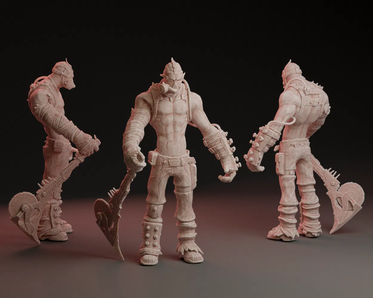 Mô hình Kreig và Rìu Điện của anh ấy, một nhân vật nổi tiếng từ trò chơi điện tử. Thích hợp cho các dự án in 3D của bạn.