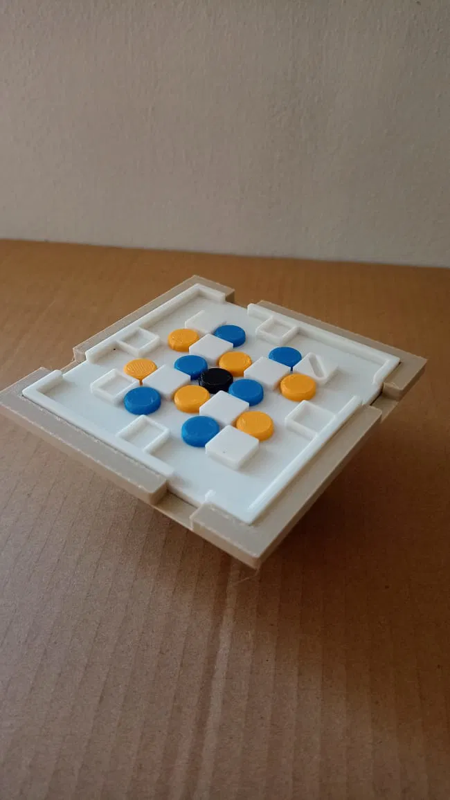 Trong trò chơi mang tính chiến thuật này, người chơi lần lượt nhấc và nghiêng bàn chơi theo nhiều cách khác nhau để đưa các quân cờ của mình ra khỏi bốn lối ra. Khi người chơi nghiêng bàn chơi, họ sẽ thử thách kỹ năng ra quyết định của mình! Người chơi sẽ phải cẩn thận suy nghĩ nước đi của mình và tránh làm rơi quân cờ của đối thủ, nghiêng bàn để đặt quân cờ của mình vào vị trí ra hoặc chặn quân cờ của đối thủ. Người chơi đầu tiên đặt sáu quân cờ của mình theo hình mẫu ngửa lên trên bàn hoặc lấy được quân cờ màu đen sẽ thắng!