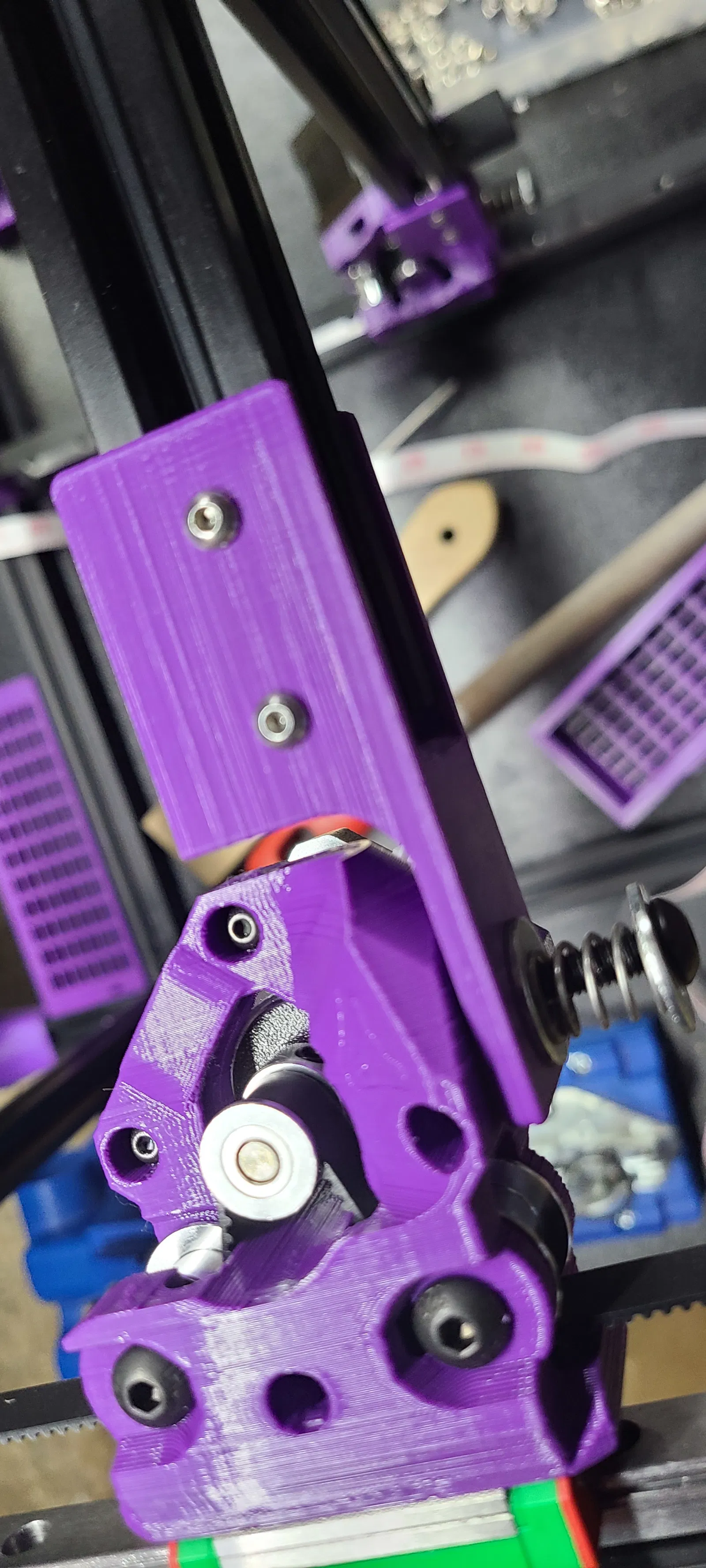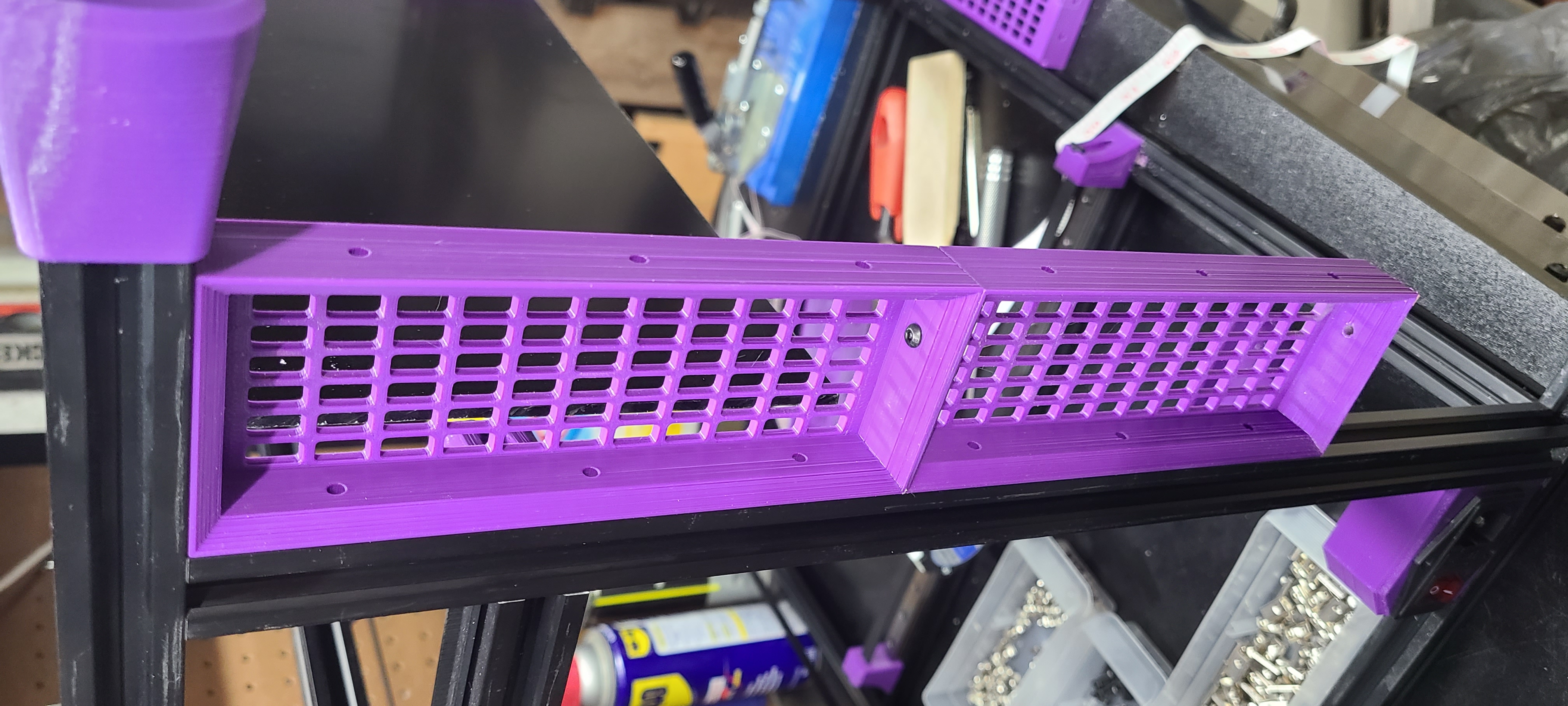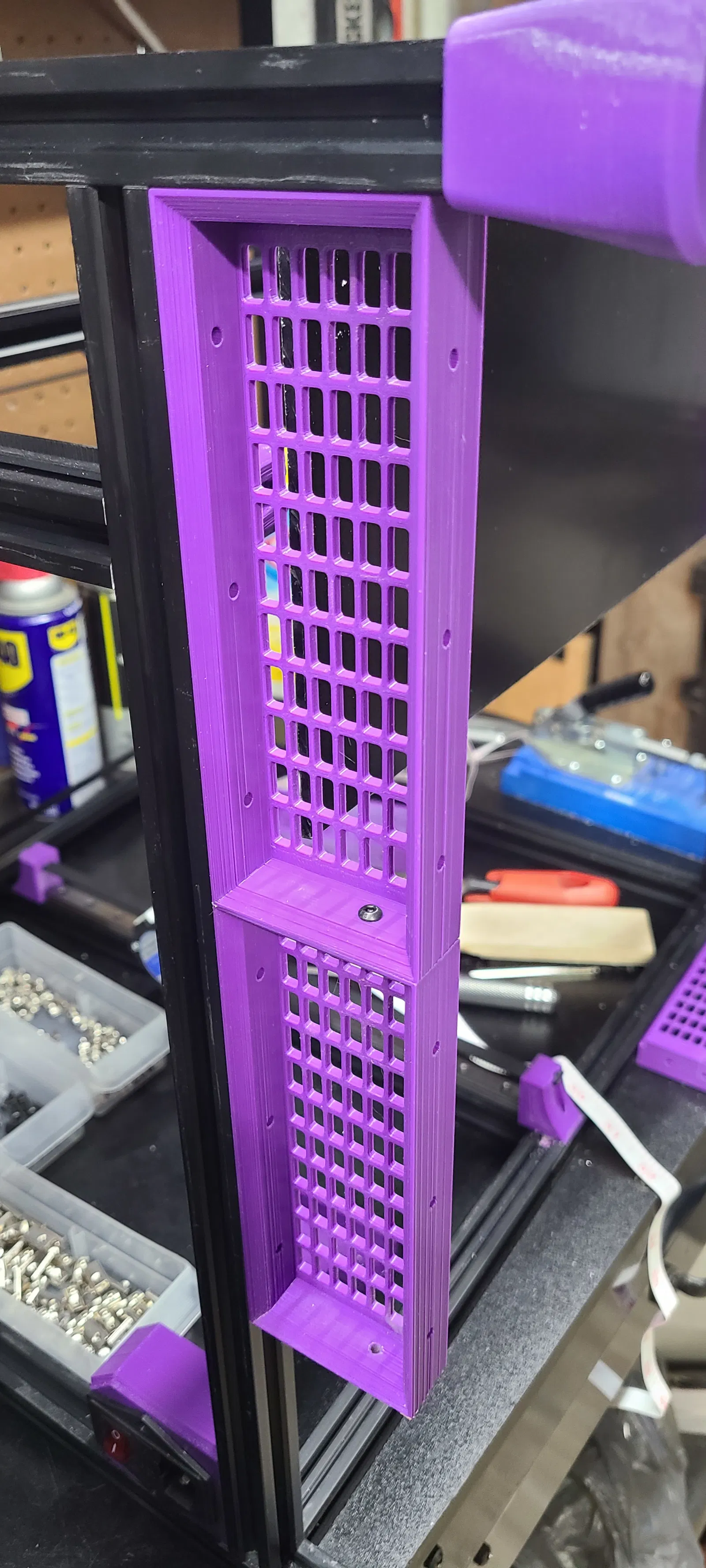 Tôi đã chế tạo khung với phần thẳng đứng dài hơn để có thể lắp các bộ phận điện tử bên dưới một tấm ốp. Những tấm này phục vụ hai chức năng. 1. Chúng làm cho máy trông "ngầu" hơn! 2. Chúng giữ tấm ốp giữ các bộ phận điện tử. Tôi đã sử dụng vật liệu ACM dày 3mm và các giá đỡ được thiết kế cho vật liệu đó hoặc bất kỳ vật liệu 3mm nào khác mà bạn sử dụng. Bạn có thể điều chỉnh kích thước trong phần mềm cắt lớp (slicer) của mình để đáp ứng mọi yêu cầu về không gian. Hãy chắc chắn rằng bạn khoan lại các lỗ bắt bu lông. Tôi chưa thử điều chỉnh cho chiều cao lớn hơn và lo ngại về phần giữ đai ốc (nut trap).
