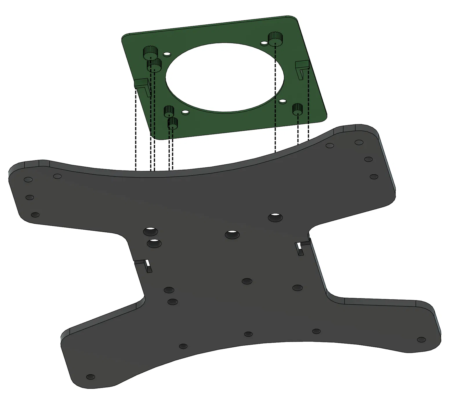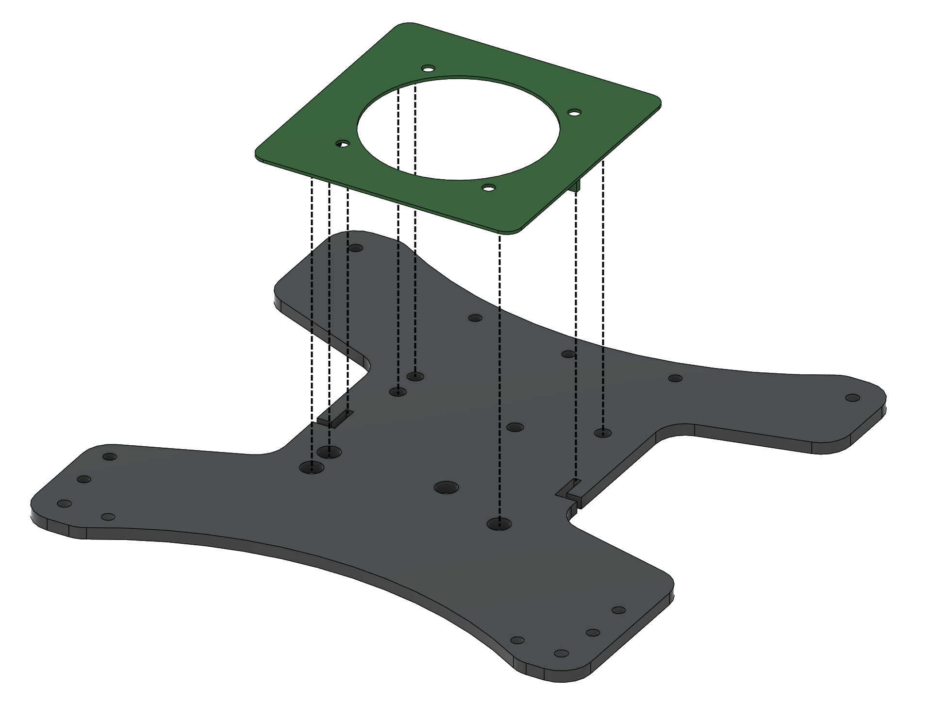 Đây là một cái dẫn hướng giường để khoan lỗ cho ren M4 nhằm lắp quạt hướng trục 6015. Thêm một lỗ để đánh dấu hoặc định tuyến vòng tròn tâm.