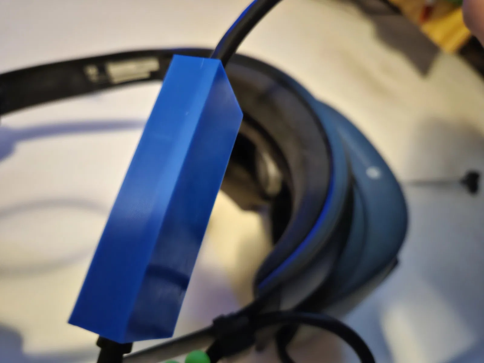 Cái kẹp này giúp cố định dây của kính HP Windows Mixed Reality, tránh bị tuột ra khi đang chơi game. Được thiết kế bằng openscad nên có thể tùy chỉnh dễ dàng theo kích thước đầu nối và dây cáp.