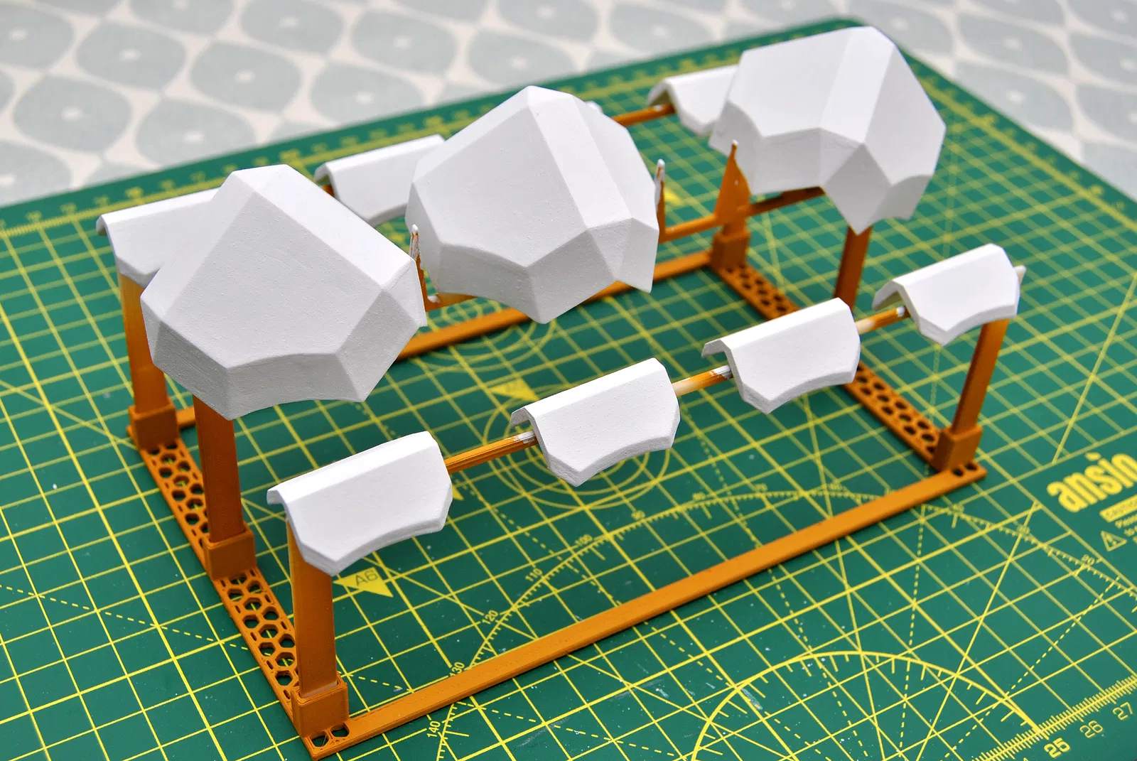 • Thiết kế dạng module, tháo rời để cất gọn phẳng, và chi phí thấp - bộ setup như trong ảnh chỉ tốn dưới 20g filament để in. Cũng có các hình lục giác. Vì yêu lục giác :v