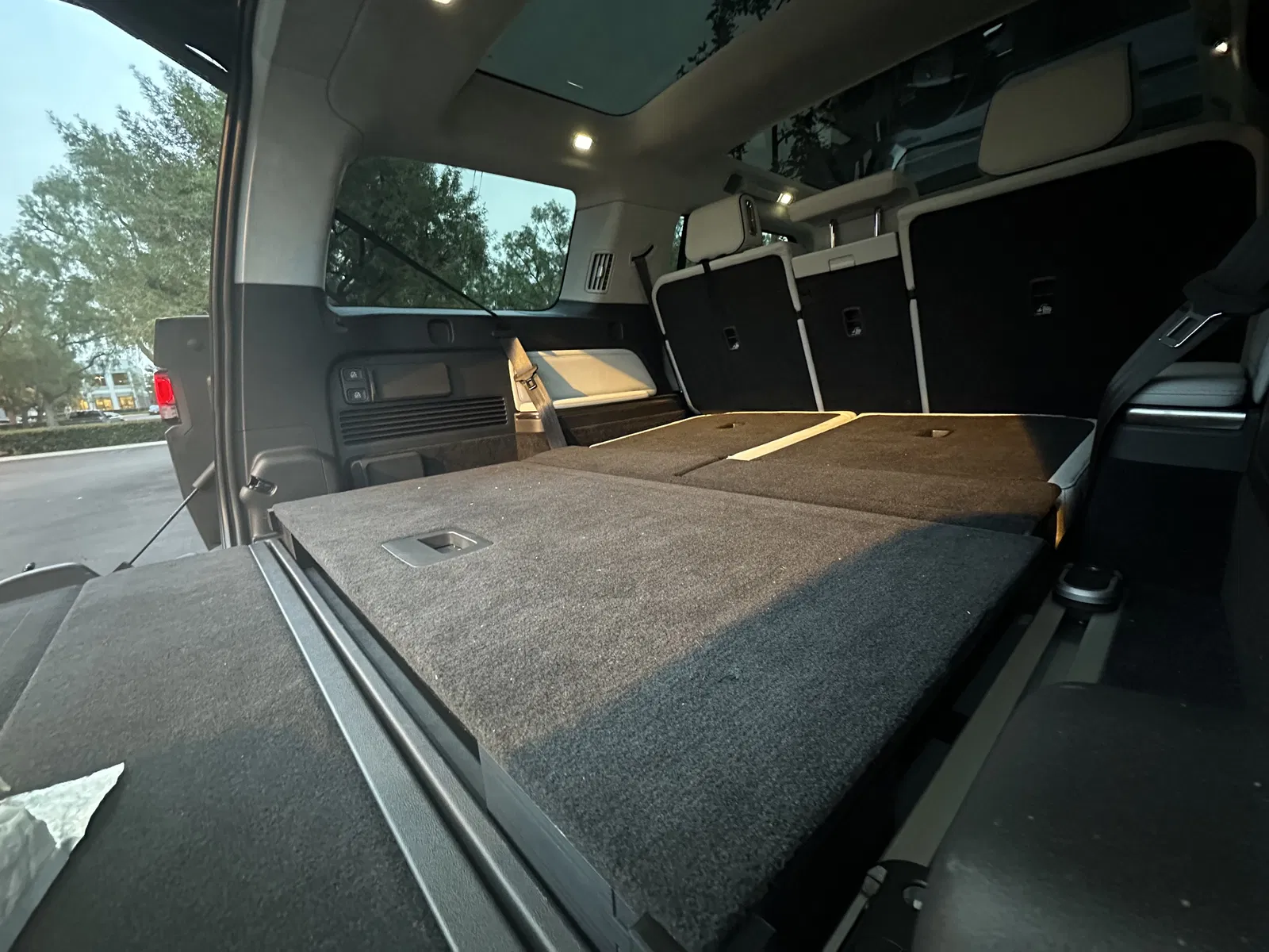 Giải pháp sàn cốp phẳng cho Rivian R1S. Phiên bản cao 57mm giúp giảm độ dốc, dễ dàng buộc đồ và tạo không gian liền mạch hơn cho cốp xe.