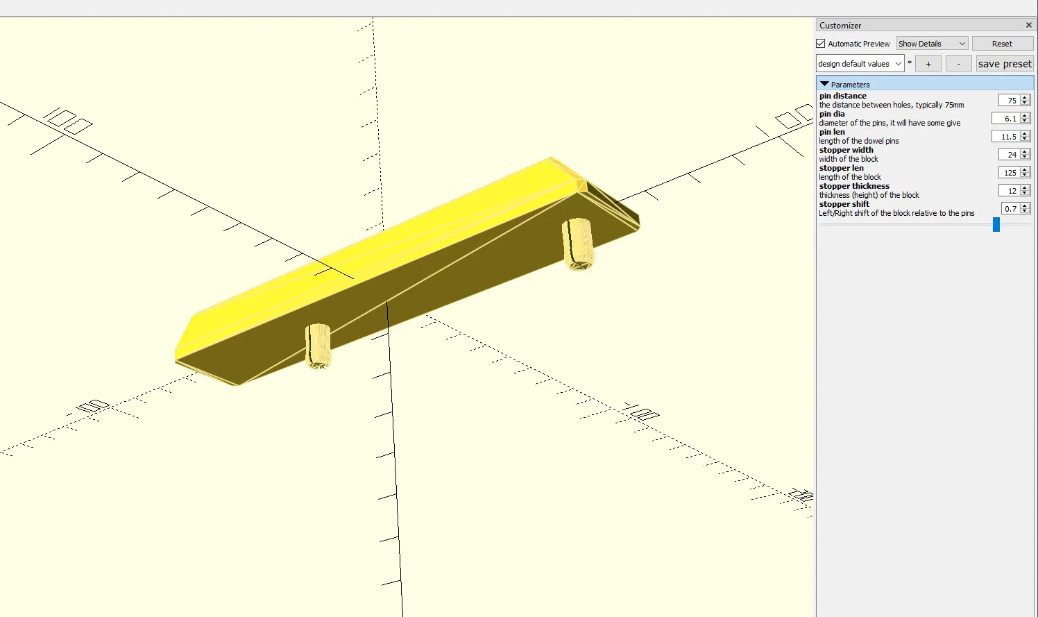 Thiết kế này có thể tùy chỉnh thông số - kèm theo file nguồn OpenSCAD - nên bạn có thể cấu hình cho bất kỳ chiều dài, chiều cao, khoảng cách lỗ, v.v.