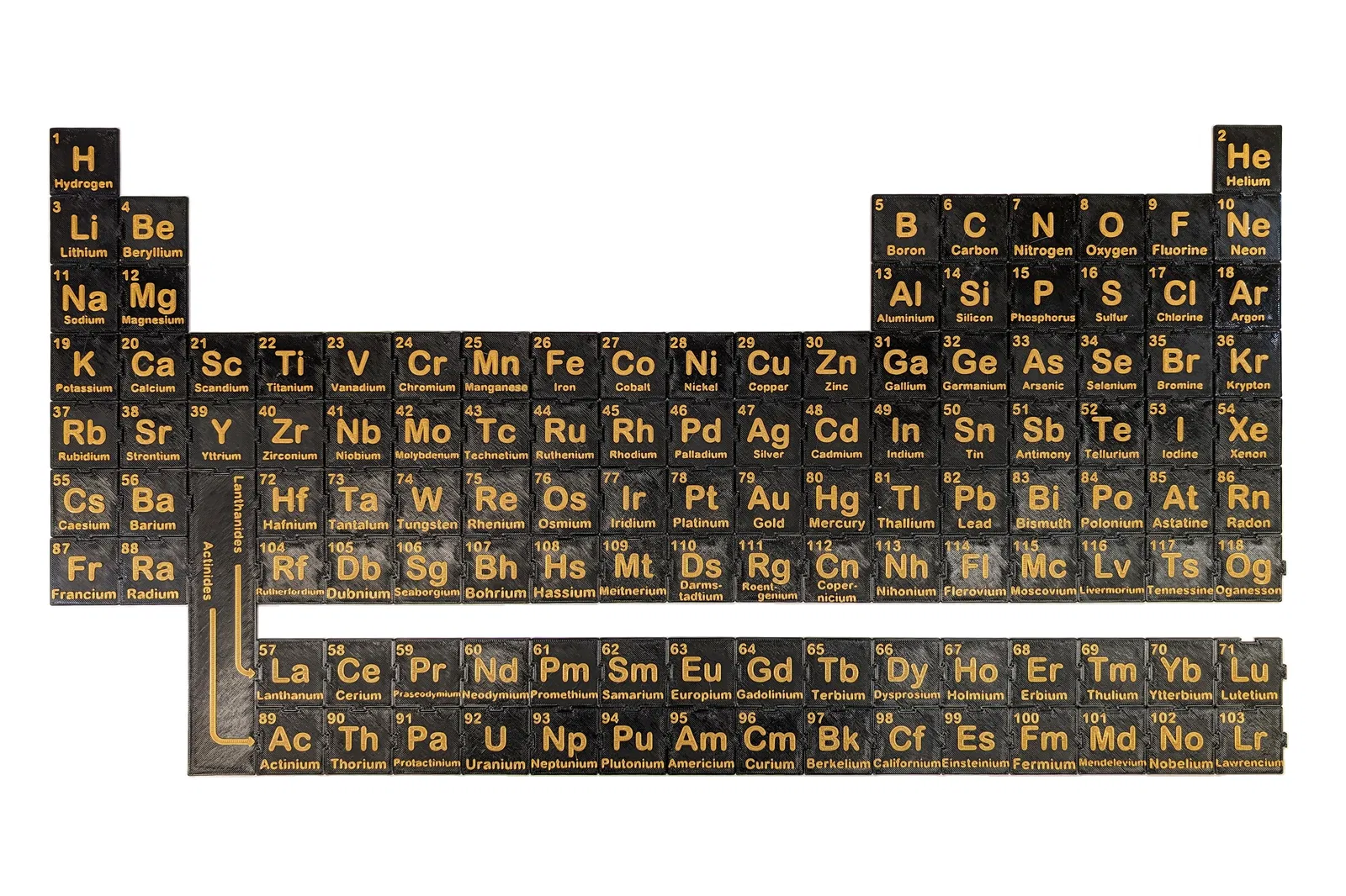 Một bảng tuần hoàn các nguyên tố có thể in được, bao gồm 118 mảnh ghép 50mmx50mm có thể lồng vào nhau. Có tùy chọn để chèn các nguyên tố Lanthanides và Actinides vào kim loại chuyển tiếp hoặc sử dụng bộ nối để tạo bố cục gọn gàng hơn.