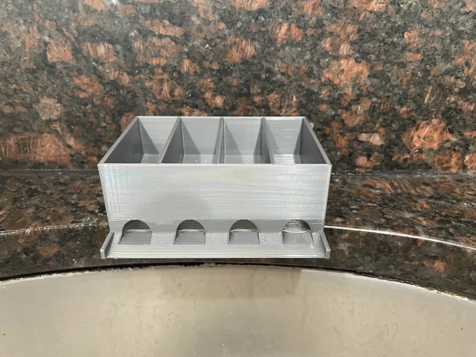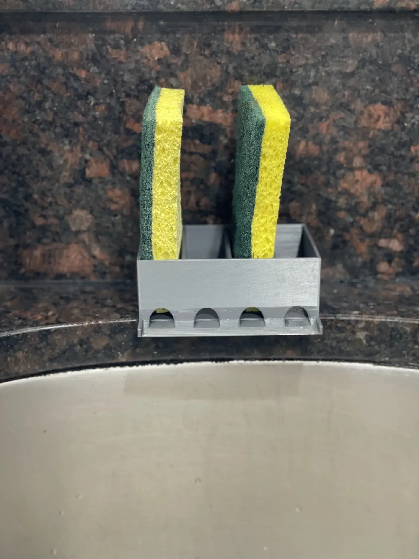 Đây là một giá đỡ bọt biển mà tôi thiết kế để đặt trên bồn rửa bát của mình. Nó có thể chứa tối đa bốn miếng bọt biển.