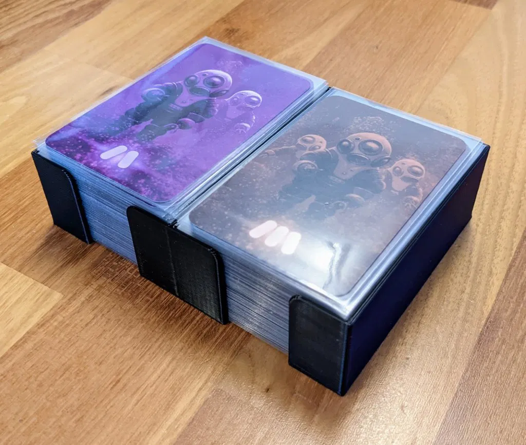 Nó hoạt động với các lá bài đã được bọc sleeve, hỗ trợ lưu trữ theo chiều dọc và nắp hộp đậy vừa khít.
