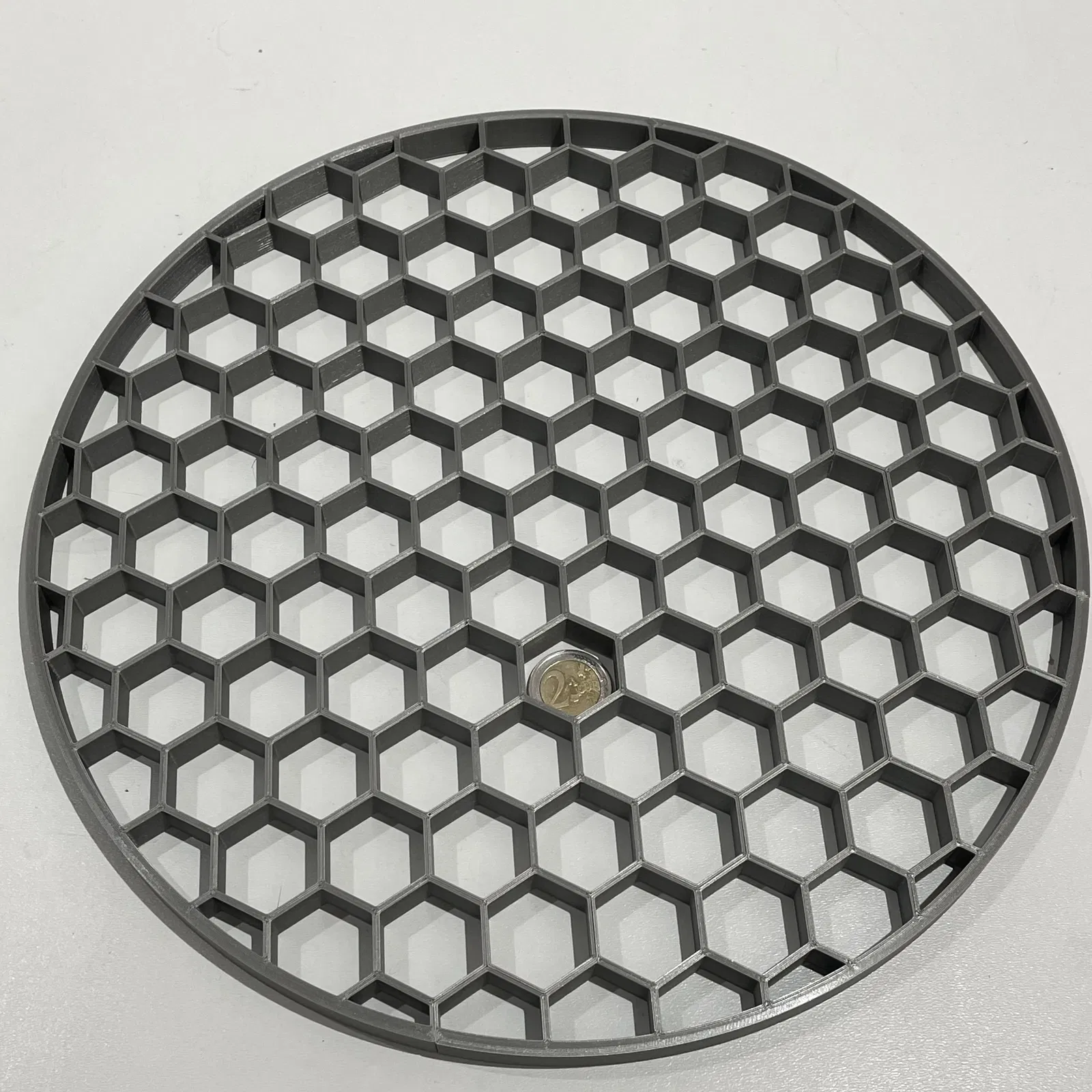Tao có ý tưởng làm cái kệ để mũ có cấu trúc tổ ong, với đường kính 32 cm, nên không thể in hết trong một lần. Vì vậy, tao phải làm nó thành nhiều phần. Mục tiêu là các ô tổ ong bên trong vòng càng đều càng tốt và toàn bộ cấu trúc cũng phải tương đối ổn định. Tao muốn một giải pháp mà cấu trúc tổ ong ở chỗ dán chỉ cần dày một nửa so với những chỗ khác, để khi dán lại thì tất cả các ô tổ ong đều có độ dày đồng nhất.
