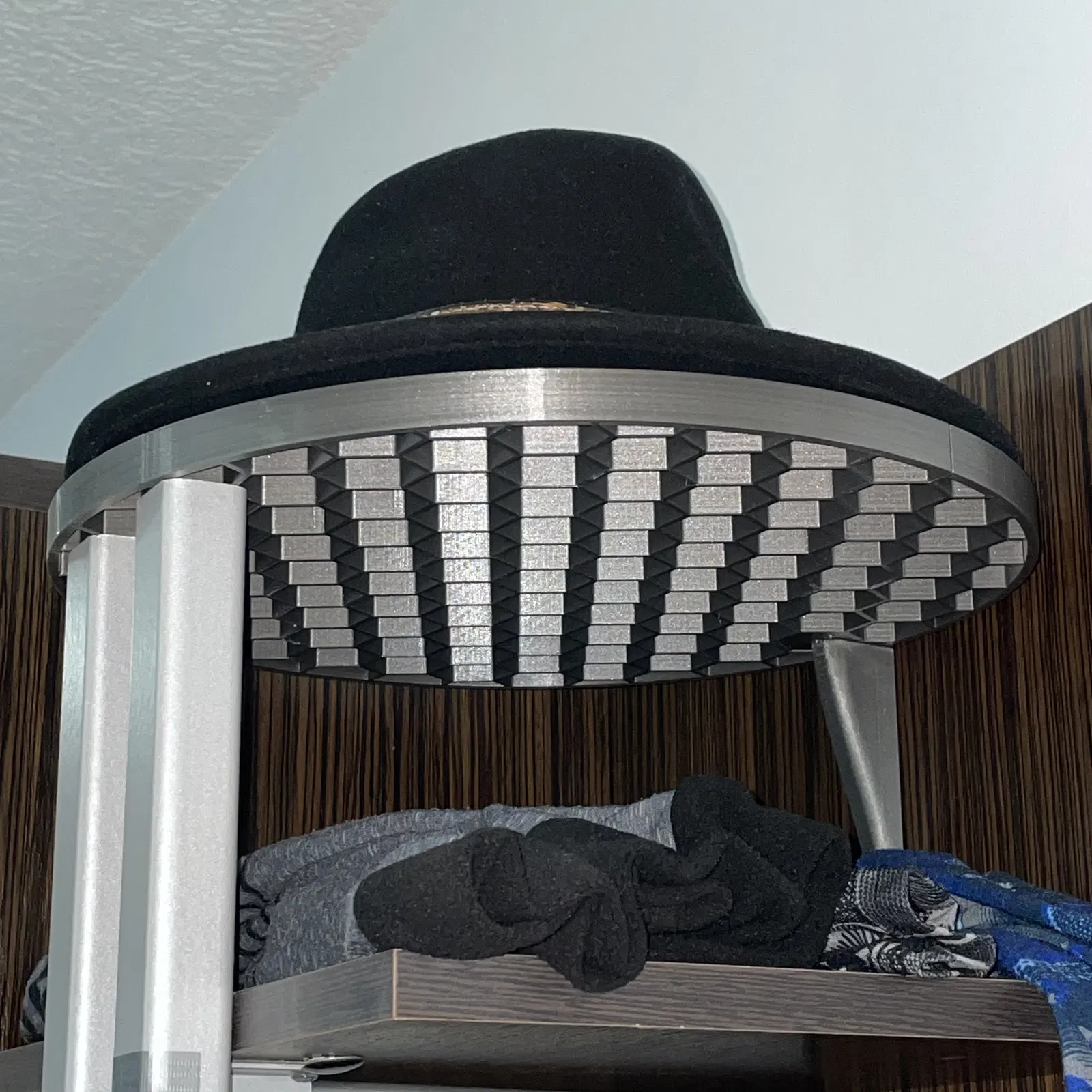 Tao có ý tưởng làm cái kệ để mũ có cấu trúc tổ ong, với đường kính 32 cm, nên không thể in hết trong một lần trên bàn in của máy MK3S+. Vì vậy, tao phải làm nó thành nhiều phần. Mục tiêu là các ô tổ ong bên trong vòng càng đều càng tốt và toàn bộ cấu trúc cũng phải tương đối ổn định. Việc chia nhỏ cấu trúc bằng phần mềm slicer đơn thuần không khả thi, tao muốn một giải pháp mà cấu trúc tổ ong ở chỗ dán chỉ cần dày một nửa so với những chỗ khác, để khi dán lại thì tất cả các ô tổ ong đều có độ dày đồng nhất.