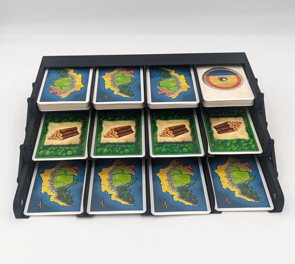 Đây là một bản remix của https://www.thingiverse.com/thing:4303881 được tạo bởi marvin_42. Khay đựng bài này được thiết kế cho bản mở rộng Cities & Knights của Settlers of Catan, bổ sung thêm nhiều lá bài cho ván chơi. Tôi thực sự rất thích thiết kế này, nó rất mượt mà và hữu dụng, tuy nhiên nó không vừa với các lá bài được dùng ở Mỹ, có kích thước 54x80mm. Do kích thước lá bài lớn hơn, xin lưu ý rằng bạn cần một bàn in có kích thước ít nhất là 250mm.
