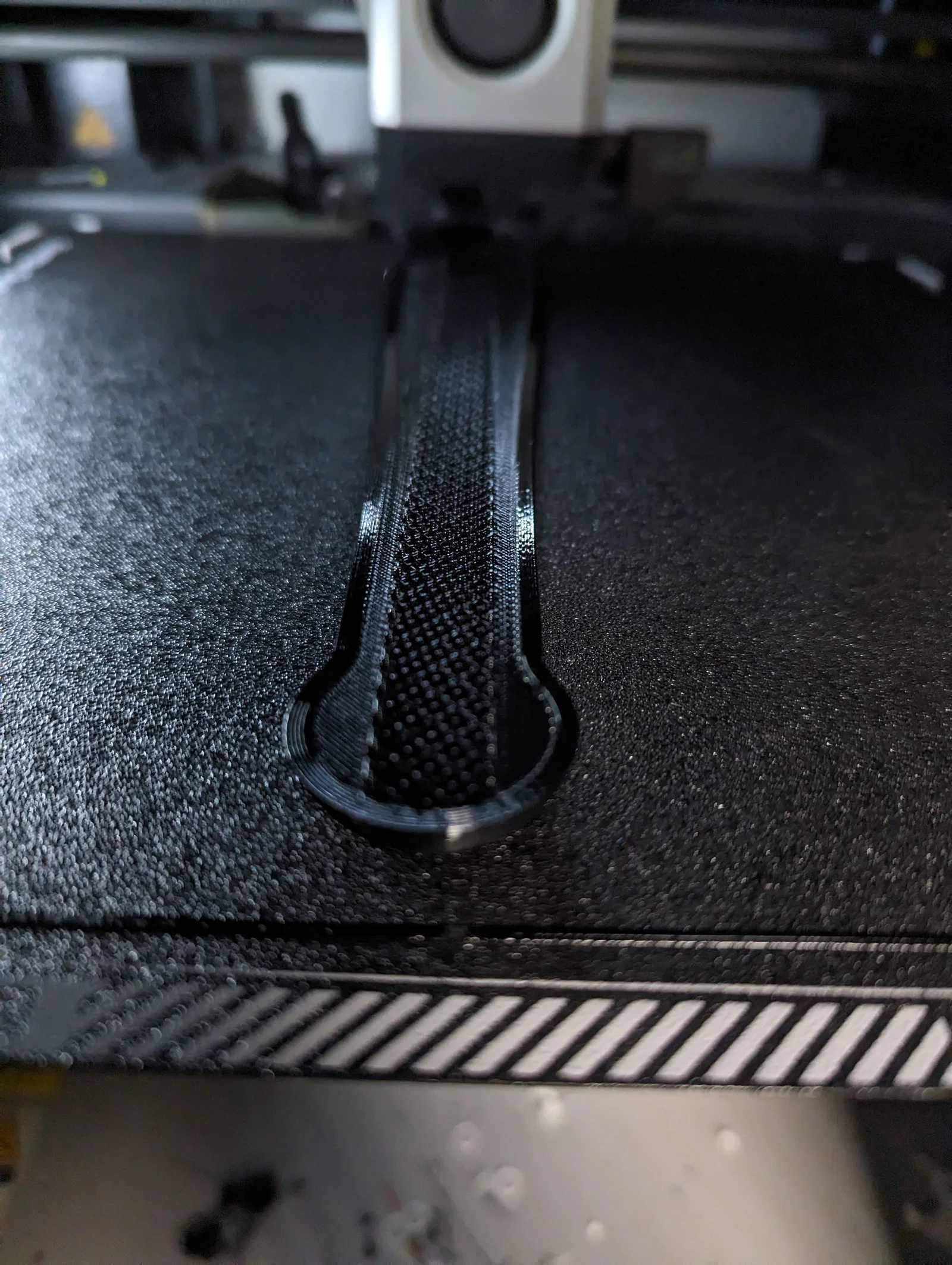 In cái này úp xuống với độ đặc ruột (infill) cao và số lớp thành (wall count) dày. Mình đã dùng PETG, 80% infill, 6 wall, 6 lớp trên dưới. Không cần support.