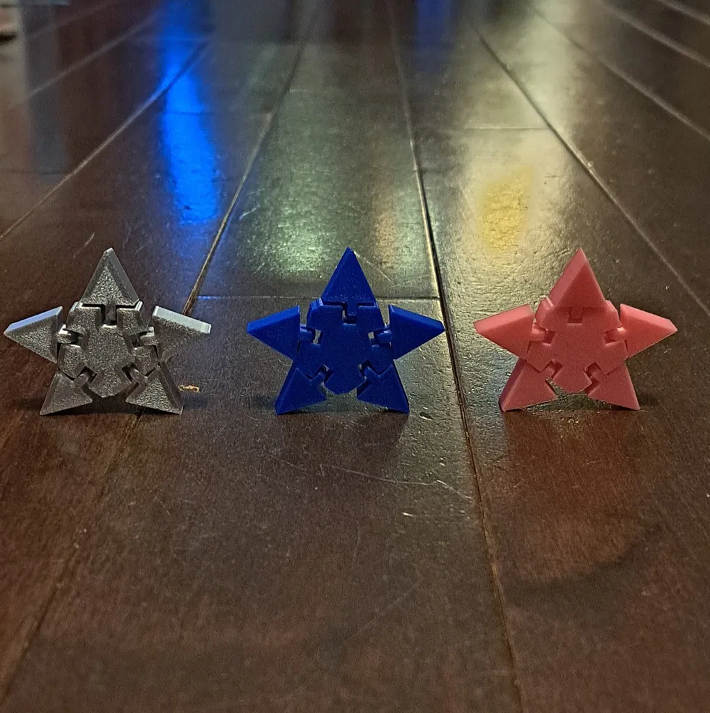 Mô hình Ngôi Sao Dẻo (Flexi Star) là một món đồ chơi khớp nối hình ngôi sao linh hoạt, siêu vui và dễ làm! Chỉ tốn chưa tới 0.25 đô và dưới 1 giờ in với PLA, đây là món quà tặng tiết kiệm và độc đáo. Có thể phóng to tùy ý nhưng khó thu nhỏ. Được làm từ bộ kit của Nerys.