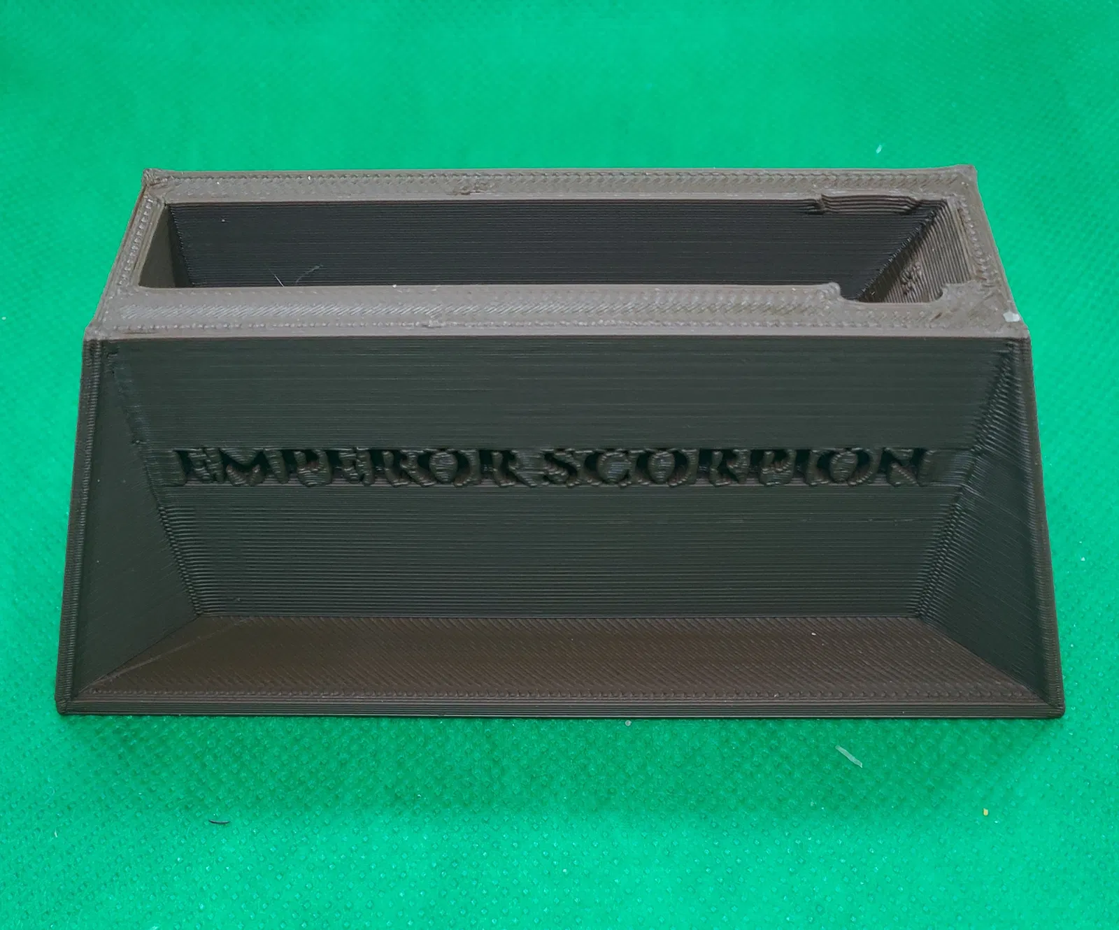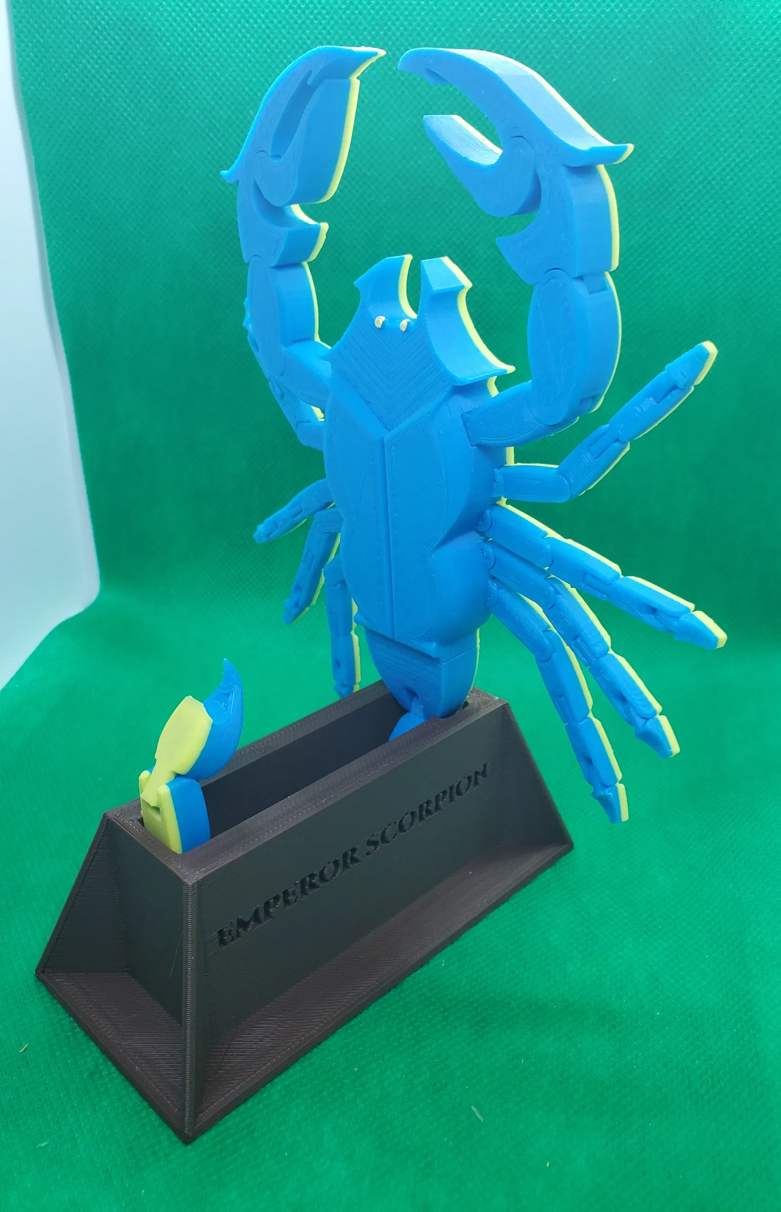 Đây là cái đế để trưng bày cho mẫu "bọ cạp hoàng đế có khớp nối" của tui, giúp giữ cho nó đứng thẳng để khoe. Phần đế còn có khắc chữ "Emporer Scorpion" ở bên hông cho thêm phần độc đáo.