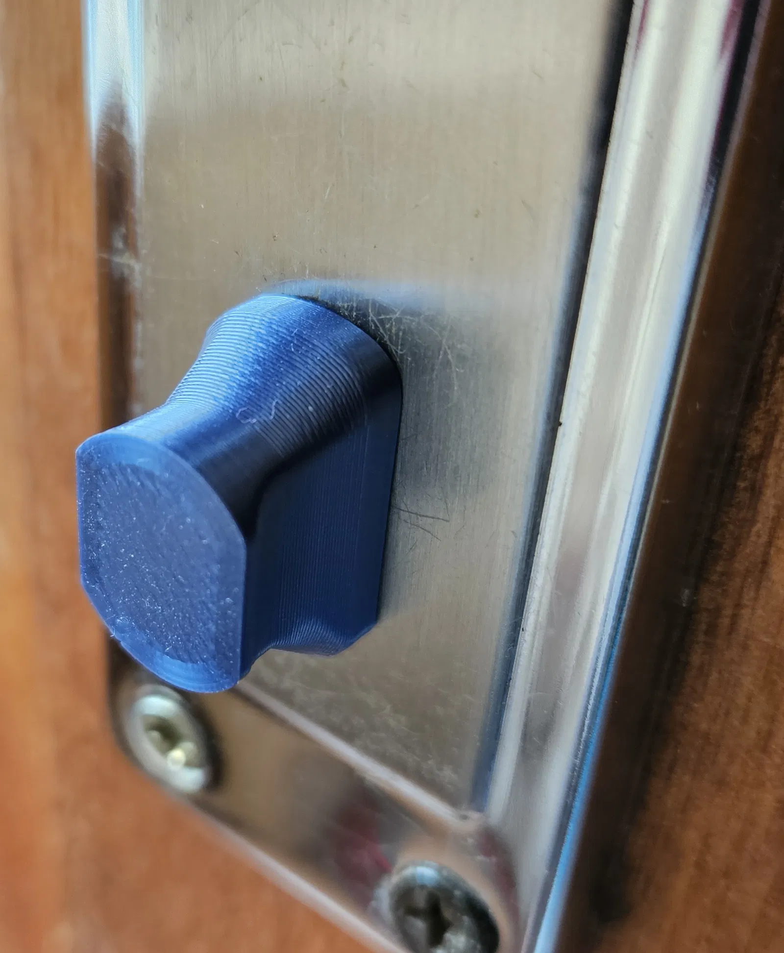 Tui thiết kế nắp ổ khóa cửa này để ngăn ong đẻ trứng vô ổ khóa. Cái nắp làm bằng Silk TPU, ôm sát nhưng dễ tháo ra khi cần mở cửa.