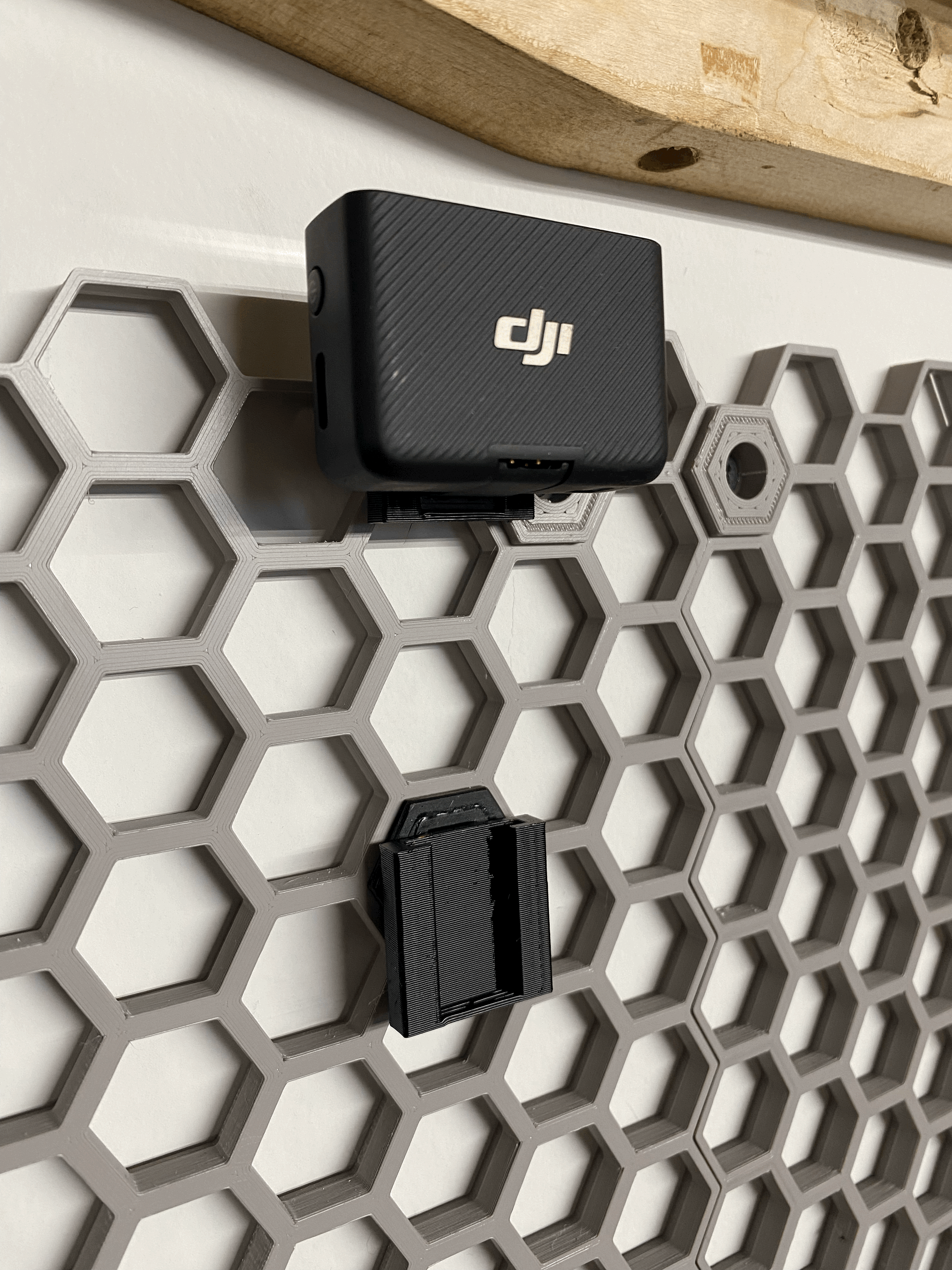 Phụ kiện giá đỡ Cold Shoe gắn mic không dây hoặc các loại ngàm mic khác lên hệ thống lưu trữ Honey Comb của bạn. In dễ dàng không cần vật liệu hỗ trợ.