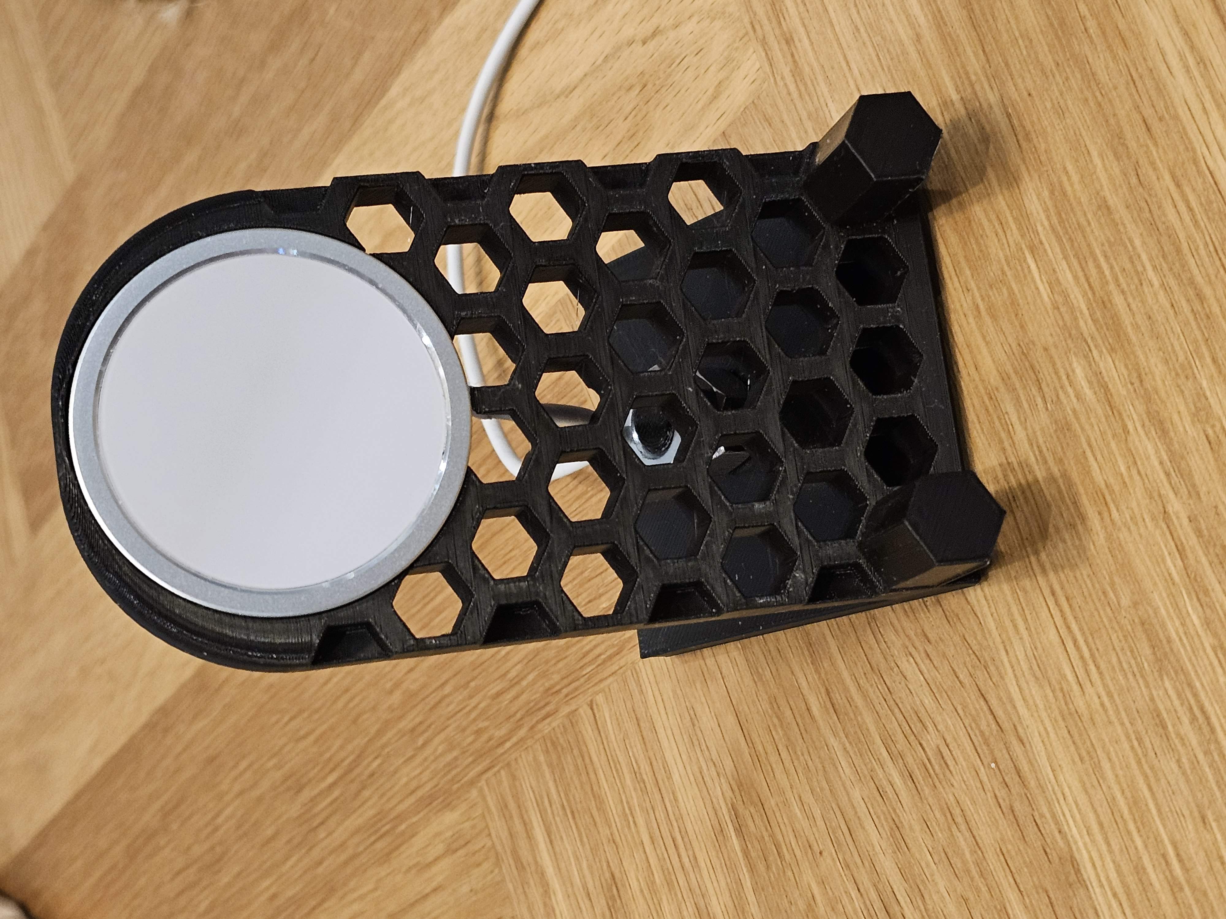 Em có mấy cái ốp lưng "MagSafe" xài được cho điện thoại Galaxy, nhưng lực hút nam châm không mạnh lắm. Nên em làm cái đế tùy chỉnh lại.
