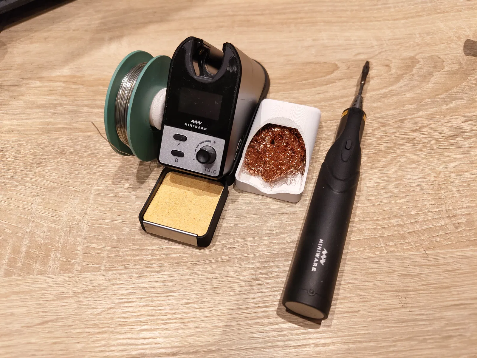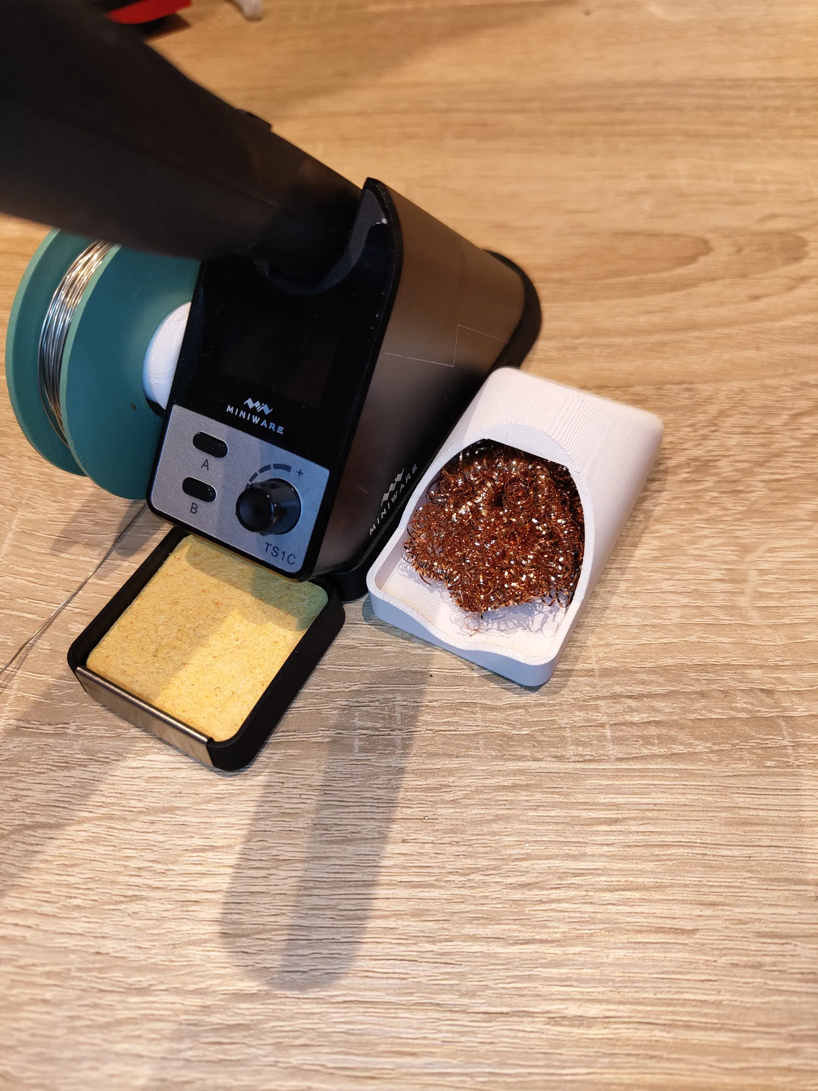 Giá đỡ này dùng để gắn vào đế TS1C của bạn, giúp giữ cuộn thiếc hàn và bùi nhùi đồng. Có hai phiên bản giá đỡ: một loại dùng chèn nhiệt kiểu Voron và một loại vặn trực tiếp vào nhựa. Bạn có thể chọn tùy theo nhu cầu sử dụng.