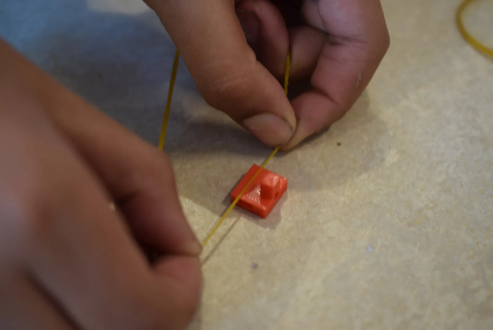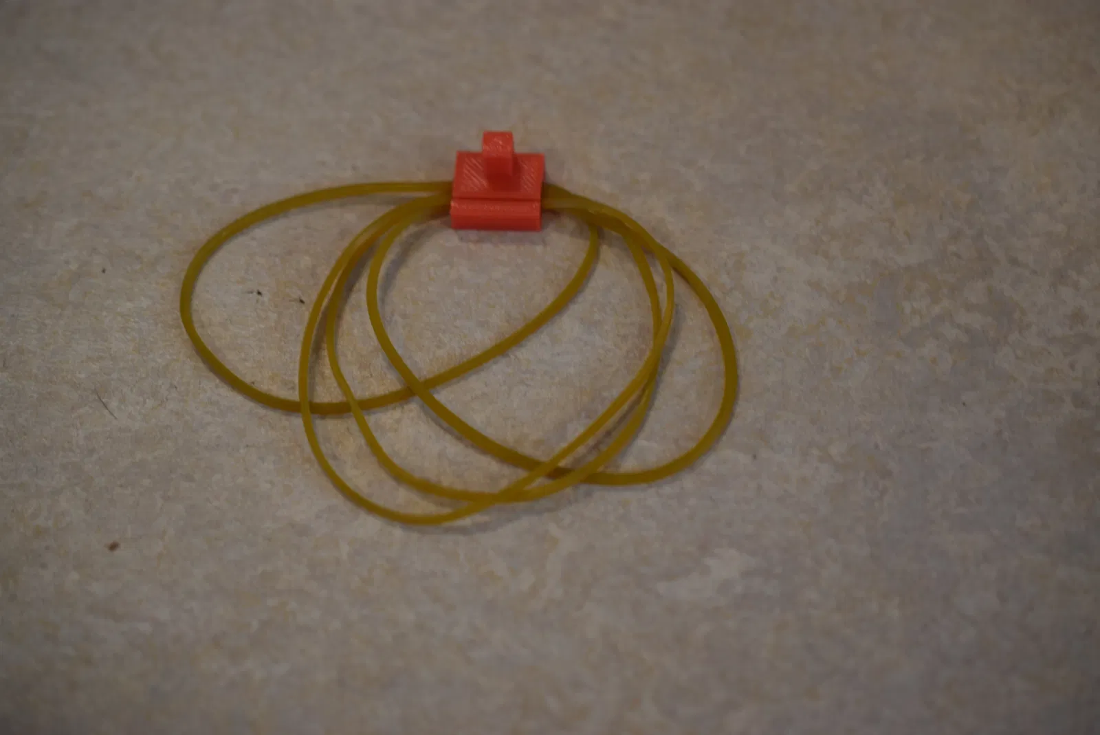 giờ thì gắn cái đầu dây thun còn lại vô cái giữ mũi tên