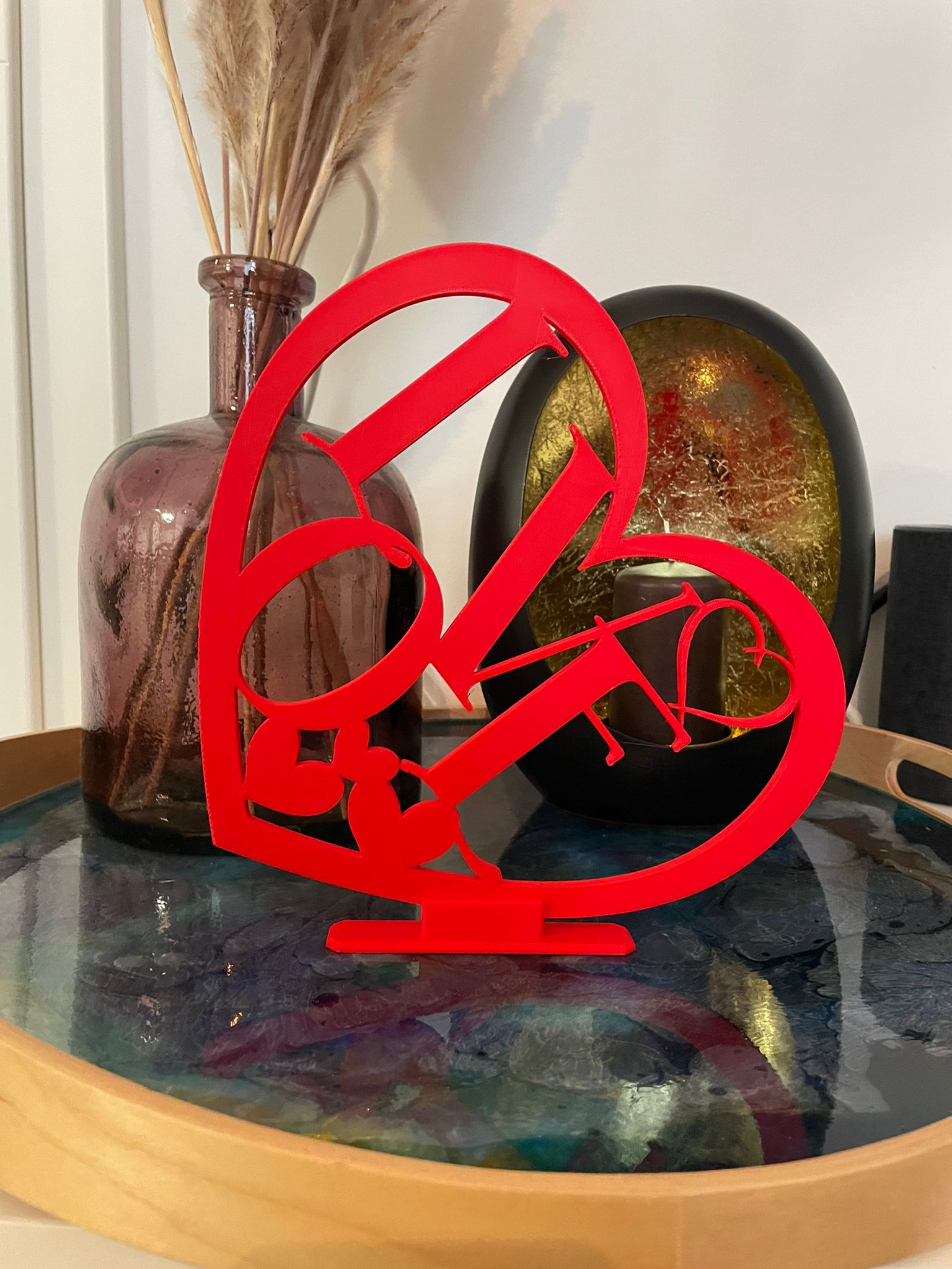 Mô hình 2D hình trái tim tình yêu lãng mạn, hoàn hảo cho ngày Valentine, kèm theo đế cắm tiện lợi. Dễ dàng in ấn, nhanh chóng, là món quà độc đáo cho dịp lễ tình nhân.