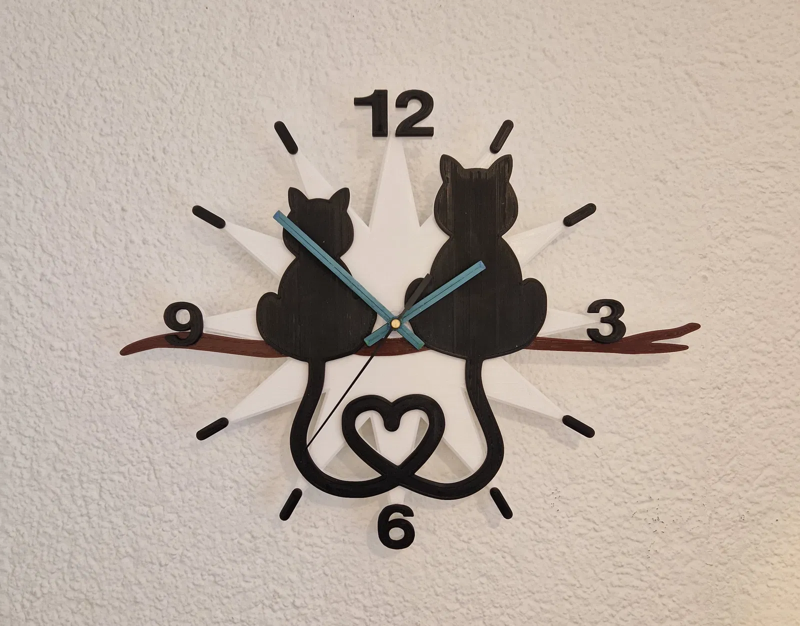 Một chiếc đồng hồ treo tường với thiết kế theo chủ đề mèo.