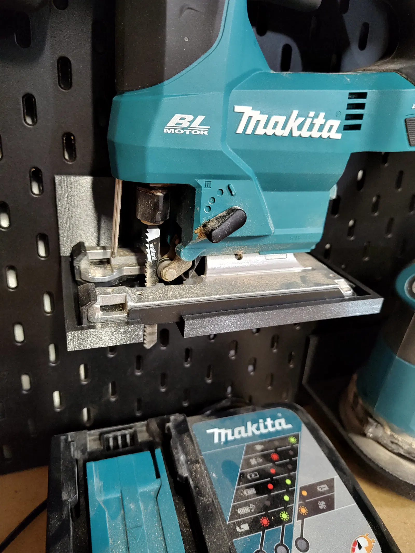 Giá đỡ Jigsaw cho Skadis, phù hợp với Makita DJV184Z. In bằng PLA, infill 50% để tăng độ chắc chắn. Một món đồ cần thiết cho các anh em làm đồ gỗ.