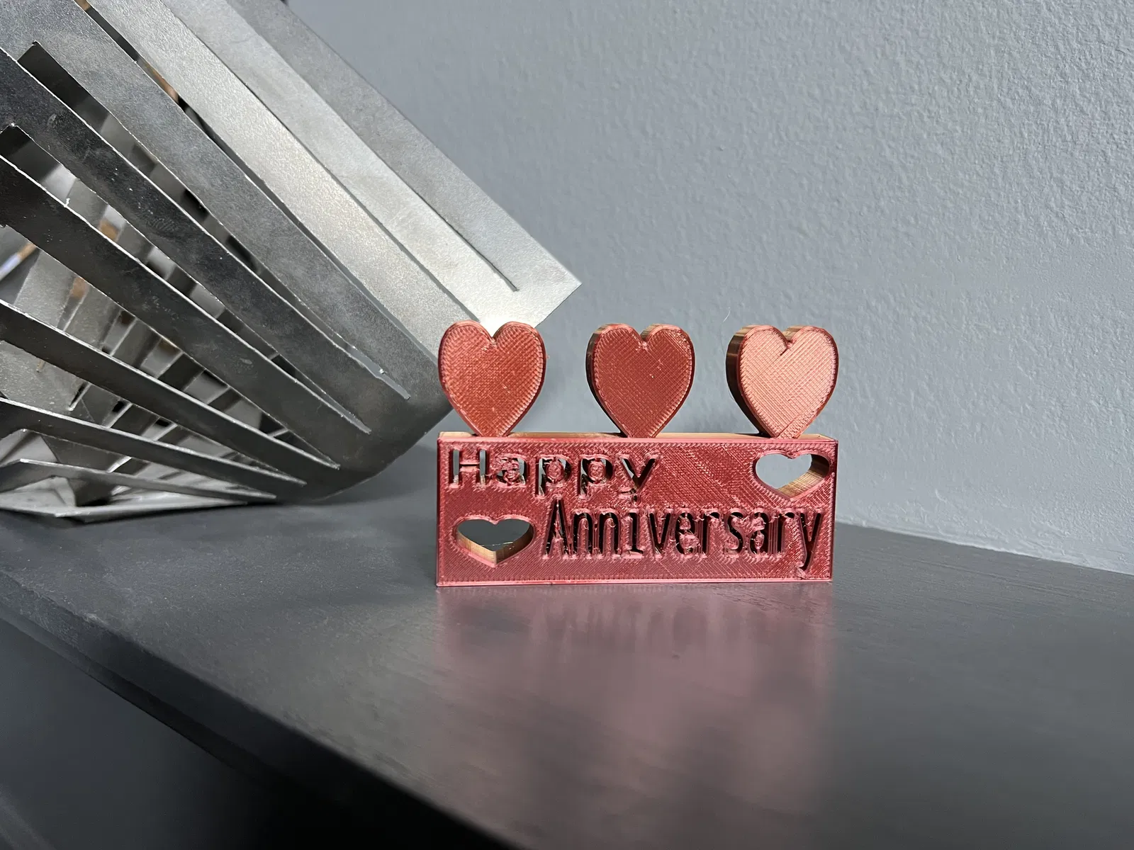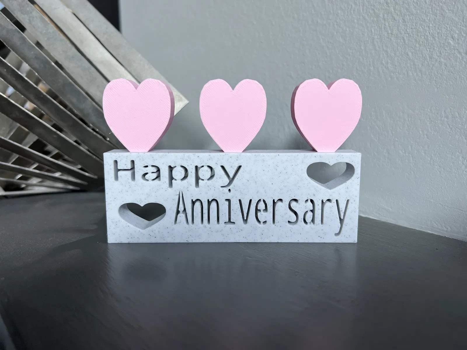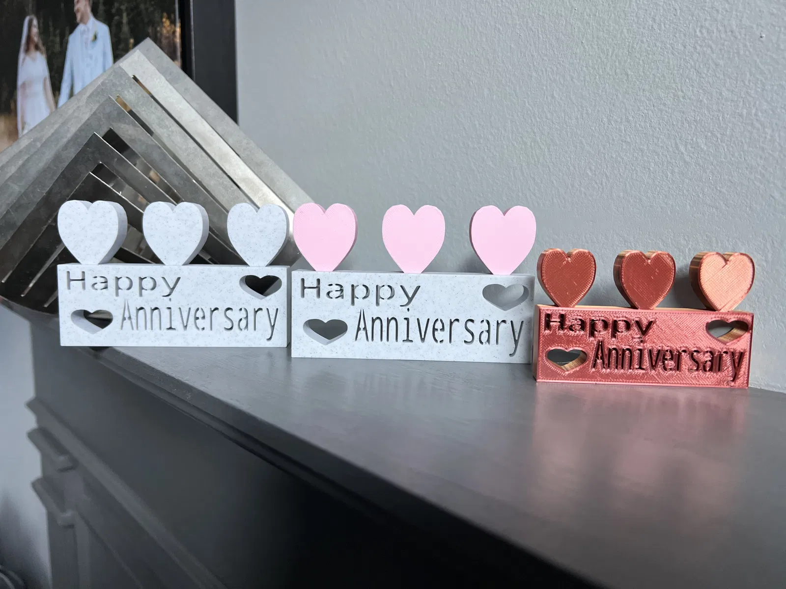 Chúc mừng kỷ niệm ngày cưới tới gia đình hoặc bạn bè để cho họ biết bạn đang nghĩ về họ vào ngày kỷ niệm của họ! Để chúc mừng họ đã kết hôn thêm một năm nữa! Chiếc màu cẩm thạch và chiếc hai tông màu được in trên máy Bambu của tôi và chiếc nhiều màu được in trên máy Mini Prusa của tôi.