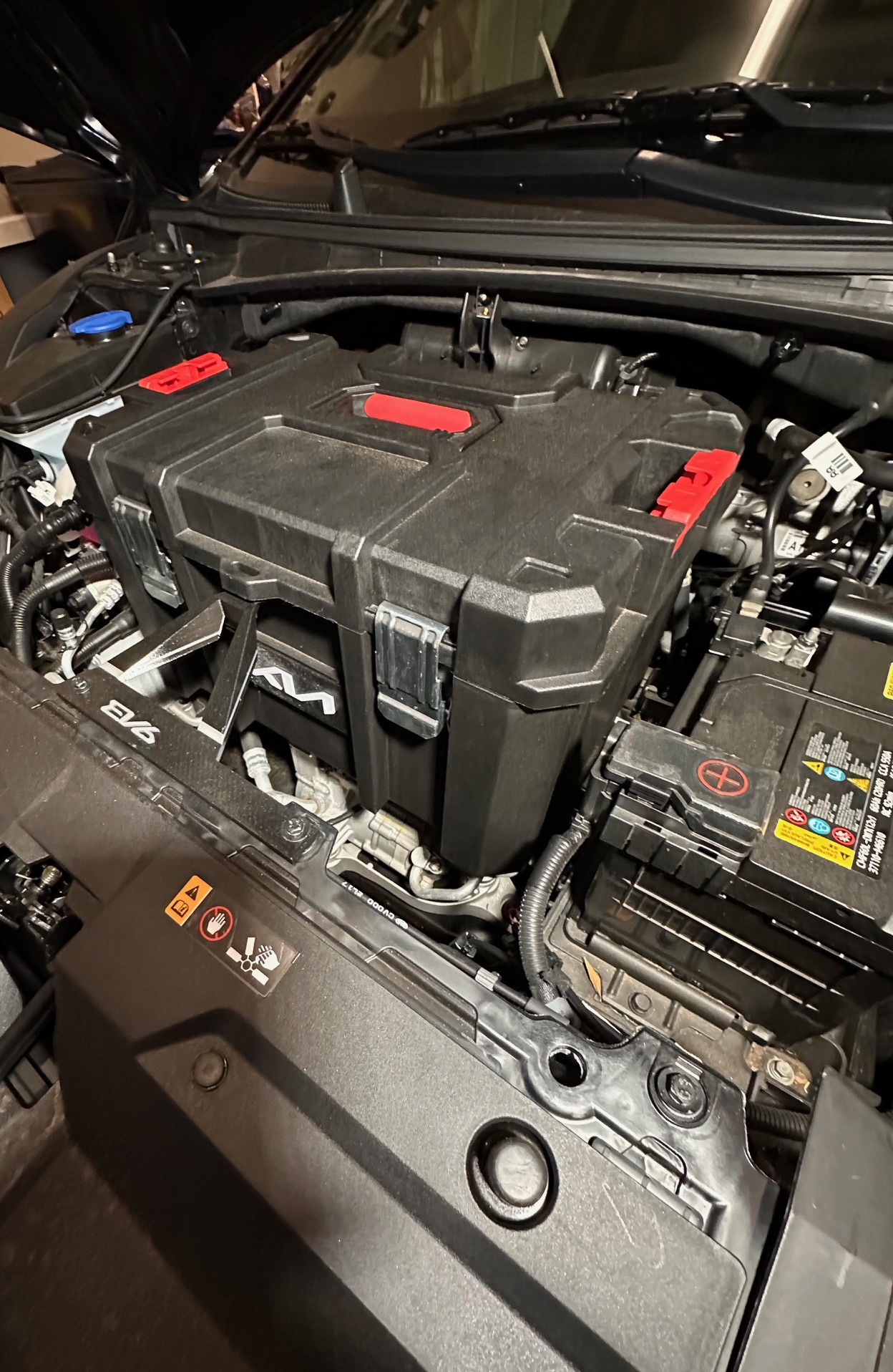 Vài chủ xe Kia EV6 và Hyundai Ioniq 5 tại Mỹ đã độ lại khoang frunk của xe bằng cách thay thế khoang chứa nhỏ nguyên bản bằng một chiếc Hộp đựng đồ lớn Modular Toolbox của Bauer, thương hiệu Harbor Freight. Tấm tên (nameplate) của hộp đựng đồ Bauer có thể được tháo ra bằng tua vít, và thay thế bằng phiên bản cho Kia hoặc Hyundai này, giúp cho bản độ trông "xịn" hơn một chút. Logo Kia được làm nổi lên, bạn có thể in chữ bằng màu khác, nhưng cần phải thay đổi filament. Tôi đã in mẫu này bằng PETG trên máy Prusa I3MK3S. (Bản thân tôi mới chỉ thử nghiệm bản độ này trên xe EV6.)