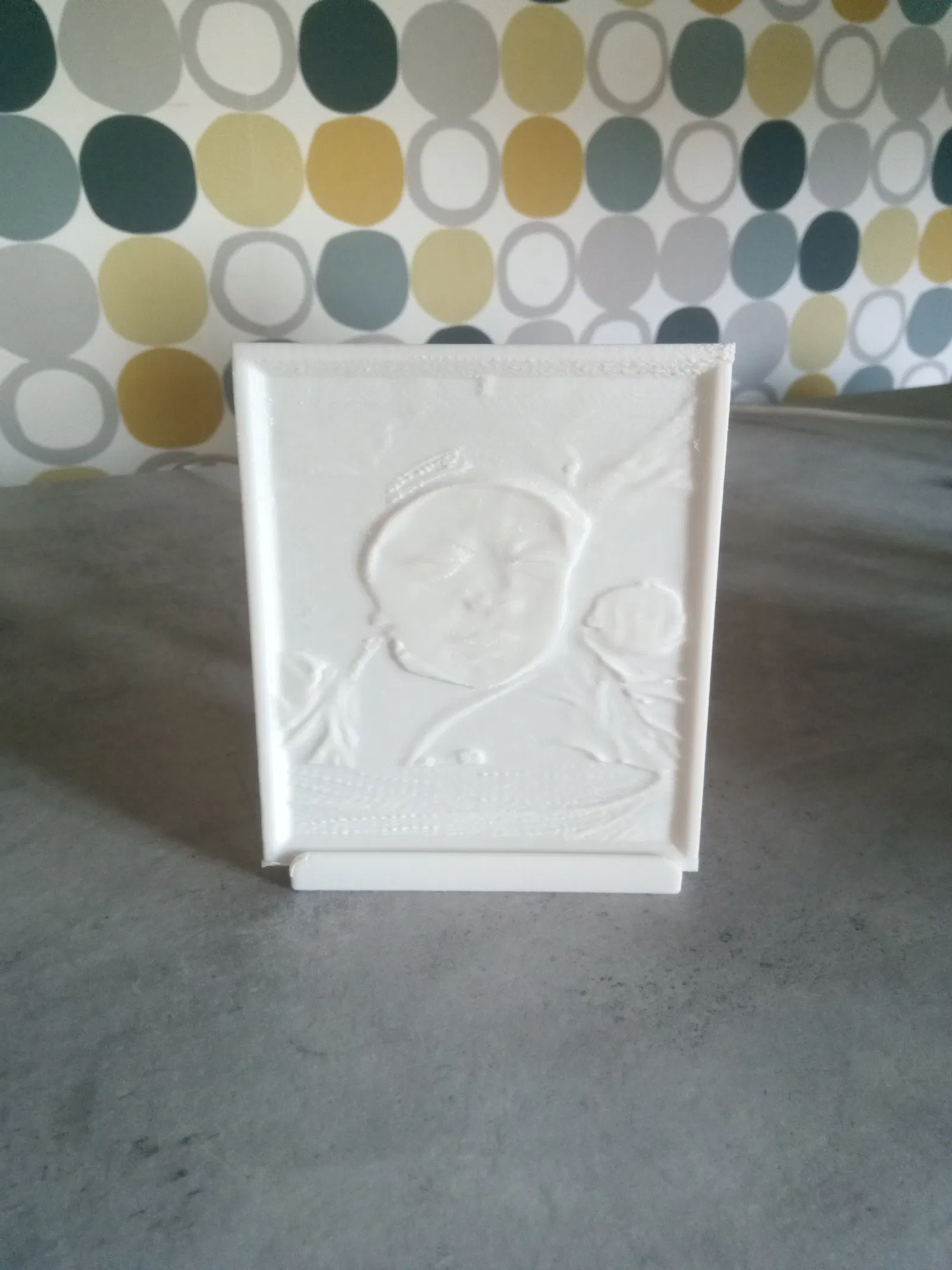 Một đế đèn lithophane đơn giản, in không cần trụ đỡ. Sử dụng đèn LED USB giá rẻ bán online, thích hợp để trưng bày và chiếu sáng cho các bản in lithophane.