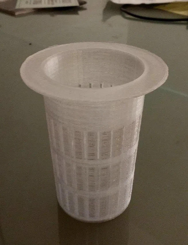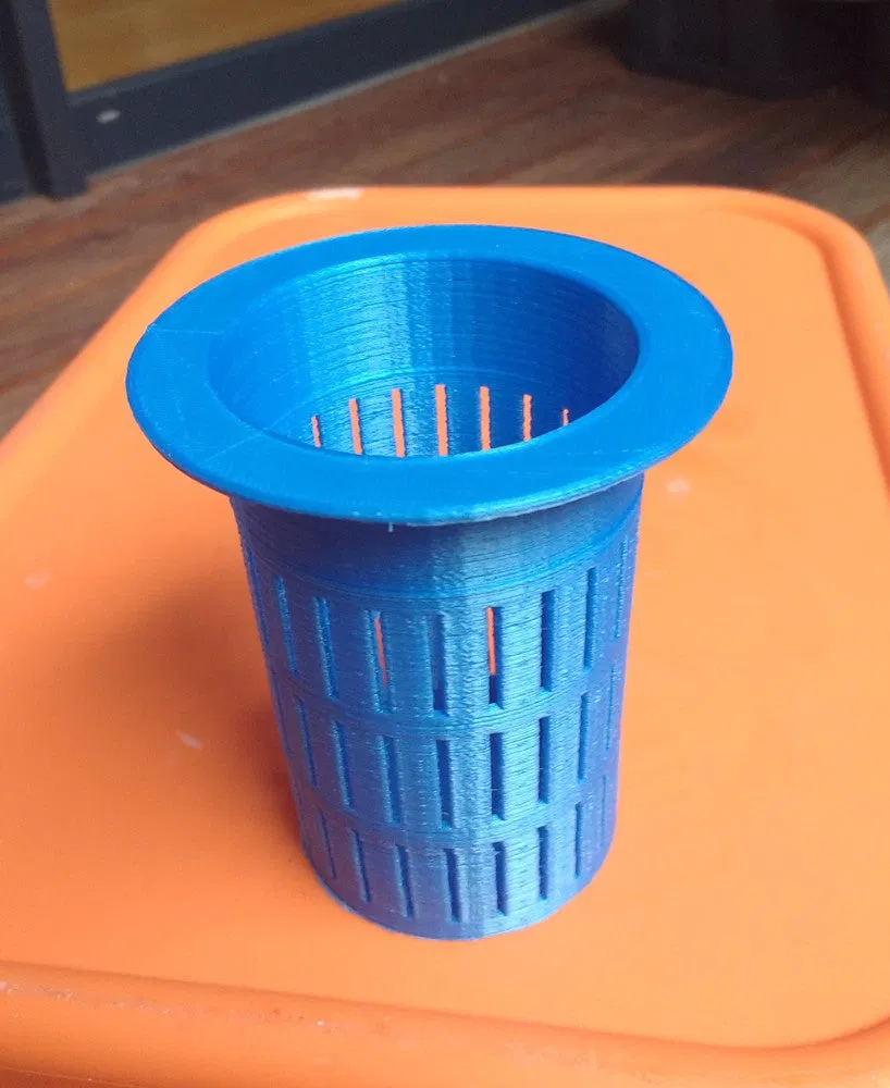 Tui mới remixed cái "Parametric Net Pot" của leeme (https://www.thingiverse.com/thing:790339) và chỉnh sửa script .scad để bạn có thể in phần đáy của chậu lưới mà không cần lỗ khi các tham số pie_segments_1, pie_segments_2 và pie_segments_3 được đặt là 0.