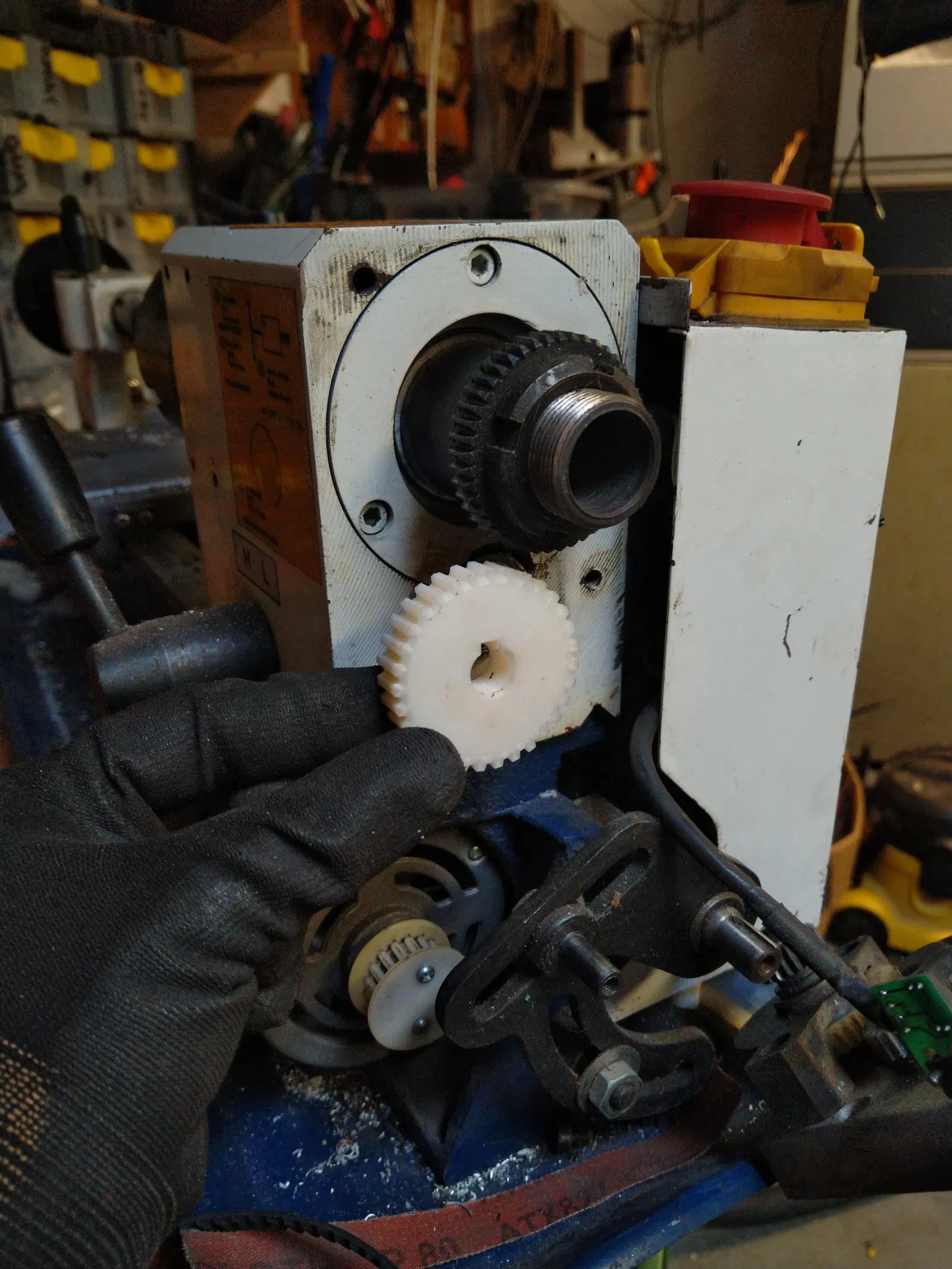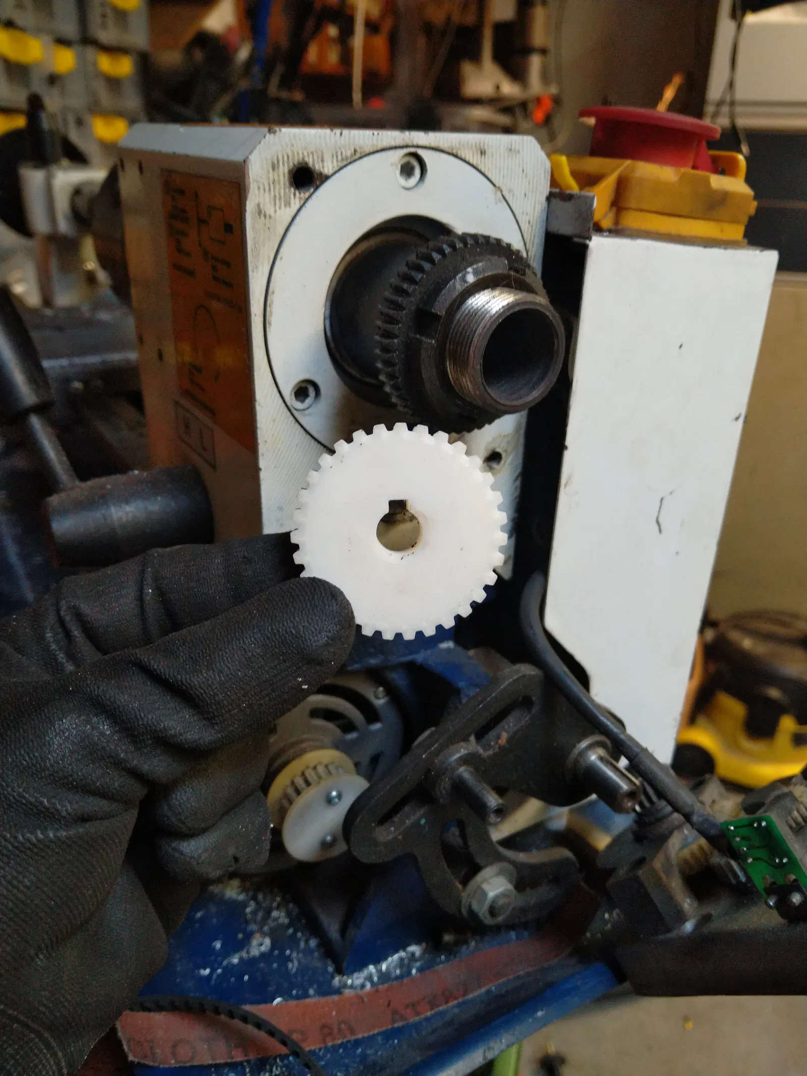 Thay thế bánh răng truyền động dây curoa của máy tiện bị nứt bằng bánh răng in 3D này.
