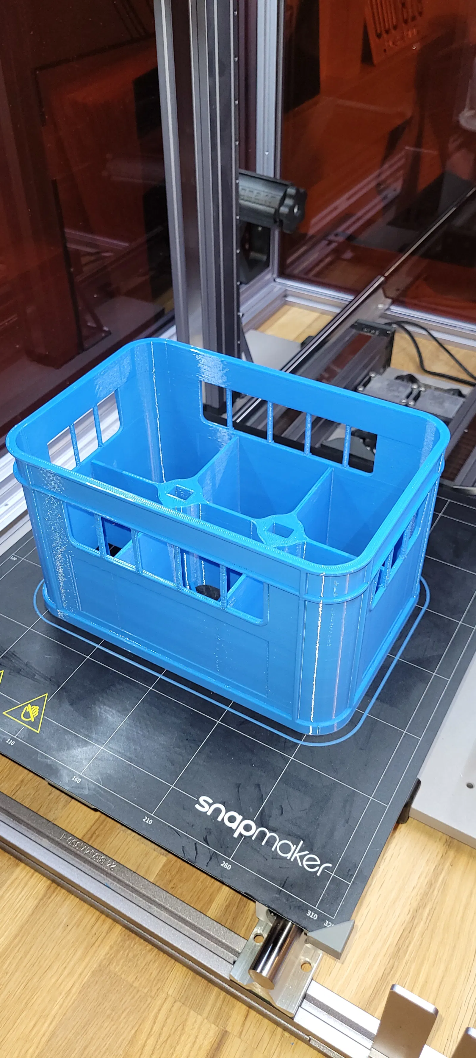Tôi rất muốn in cái thùng này, nhưng mà tôi không có máy in đa sắc, nên tôi đã chỉnh sửa lại mô hình một chút để có thể in được mà không cần hệ thống đa vật liệu...