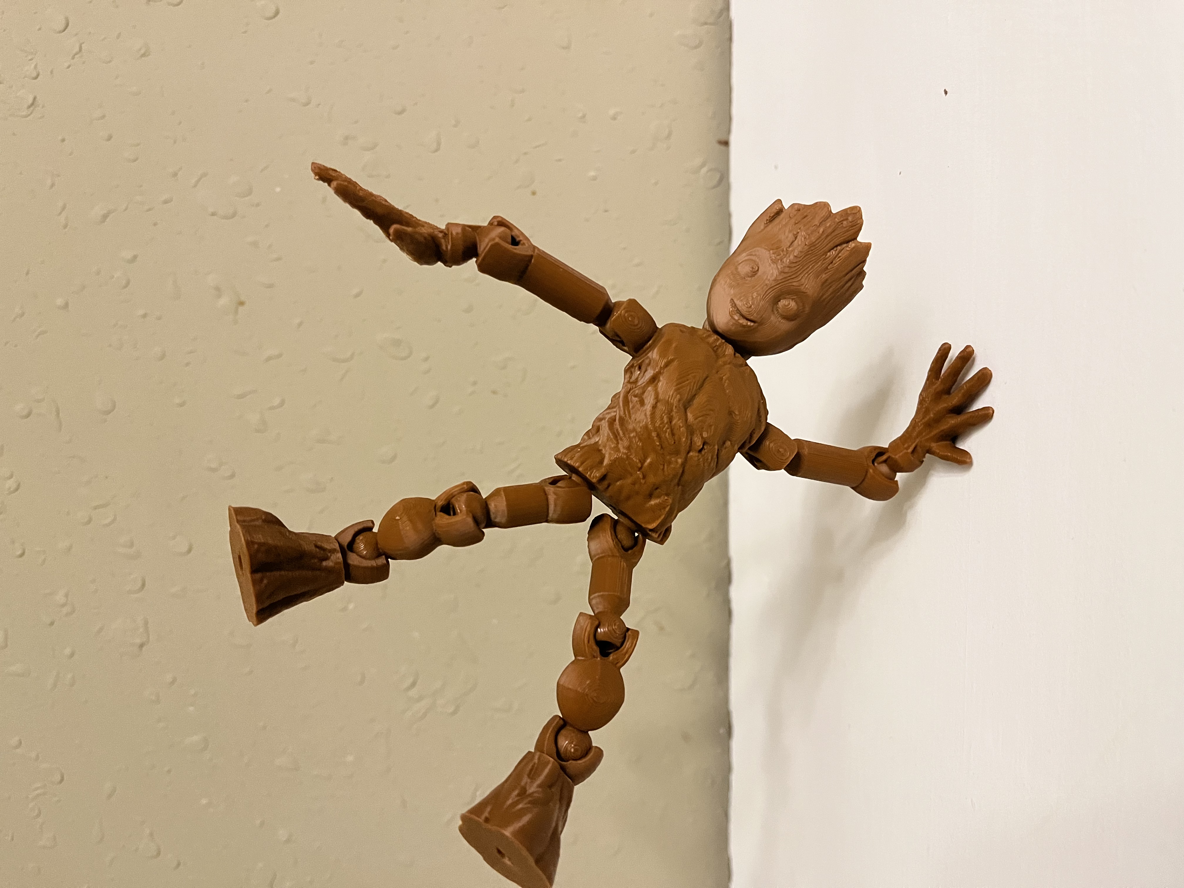 Tui là Groot!!! Nếu thích thì theo dõi tui để nhận thêm phụ kiện nha!!! Mô hình Groot khớp nối này cần dùng PETG để in, không thì mau mòn lắm đó nha. Có kèm link Deadpool cho mấy ông tham khảo luôn!