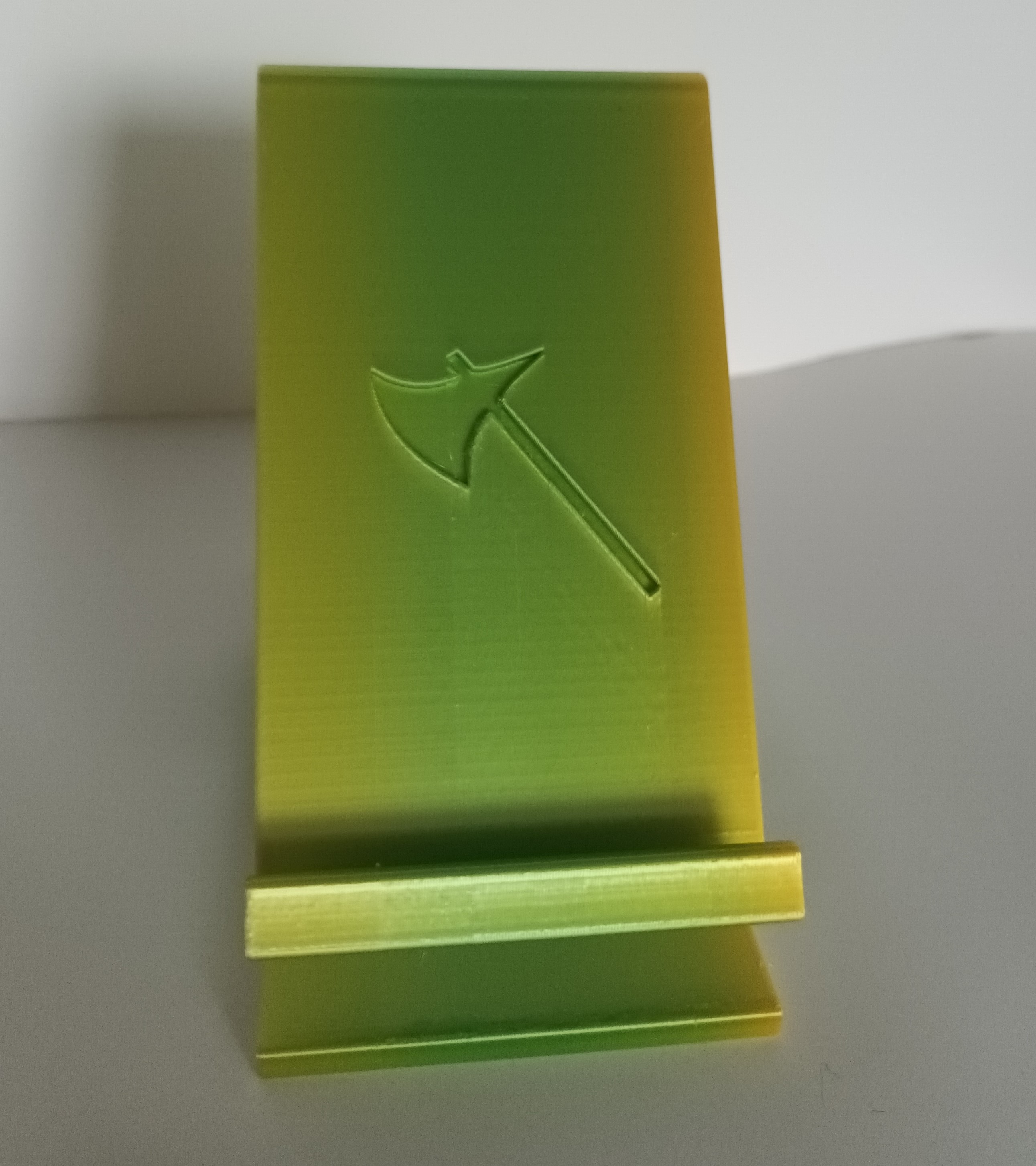 Chân đế hai mặt cho cả điện thoại và máy tính bảng, có thể đặt vừa thiết bị dày tới 26mm. Có hai phiên bản để bạn lựa chọn: một bản trơn và một bản có họa tiết hình rìu. Model không yêu cầu vật liệu hỗ trợ khi in nghiêng.