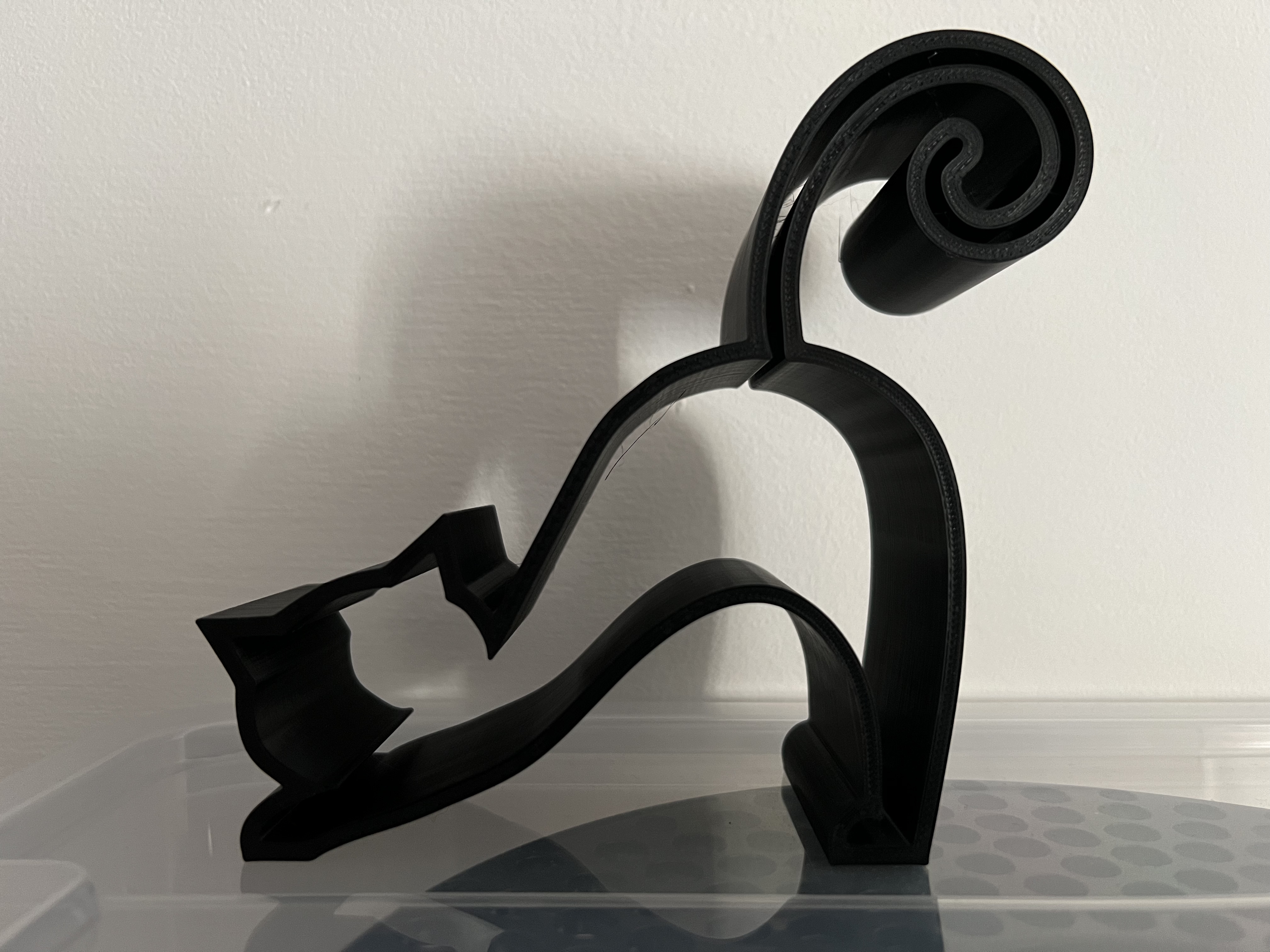 Trang trí hình con mèo Gatto 1. Sản phẩm trang trí để bàn hình mèo ngộ nghĩnh, kích thước 13,5cm x 13cm x 5cm. In bằng PLA với độ lấp đầy 15%, không cần support. Thích hợp làm đồ trang trí, quà tặng.