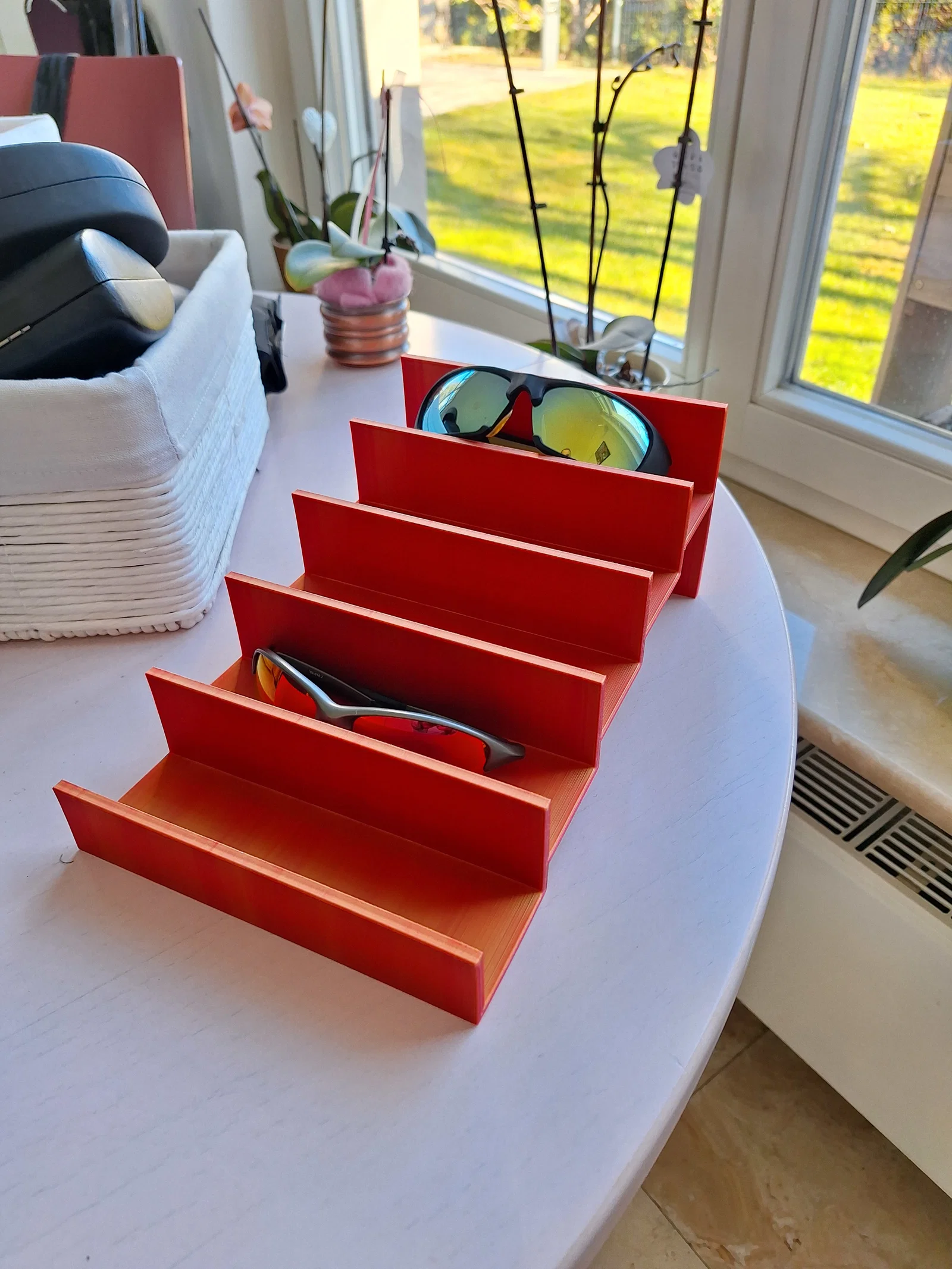 Phiên bản lớn hơn của tác phẩm trước đó của tôi. Sản phẩm này được thiết kế để cung cấp không gian rộng rãi hơn cho việc trưng bày kính râm của bạn, mang lại sự tiện lợi và thẩm mỹ.