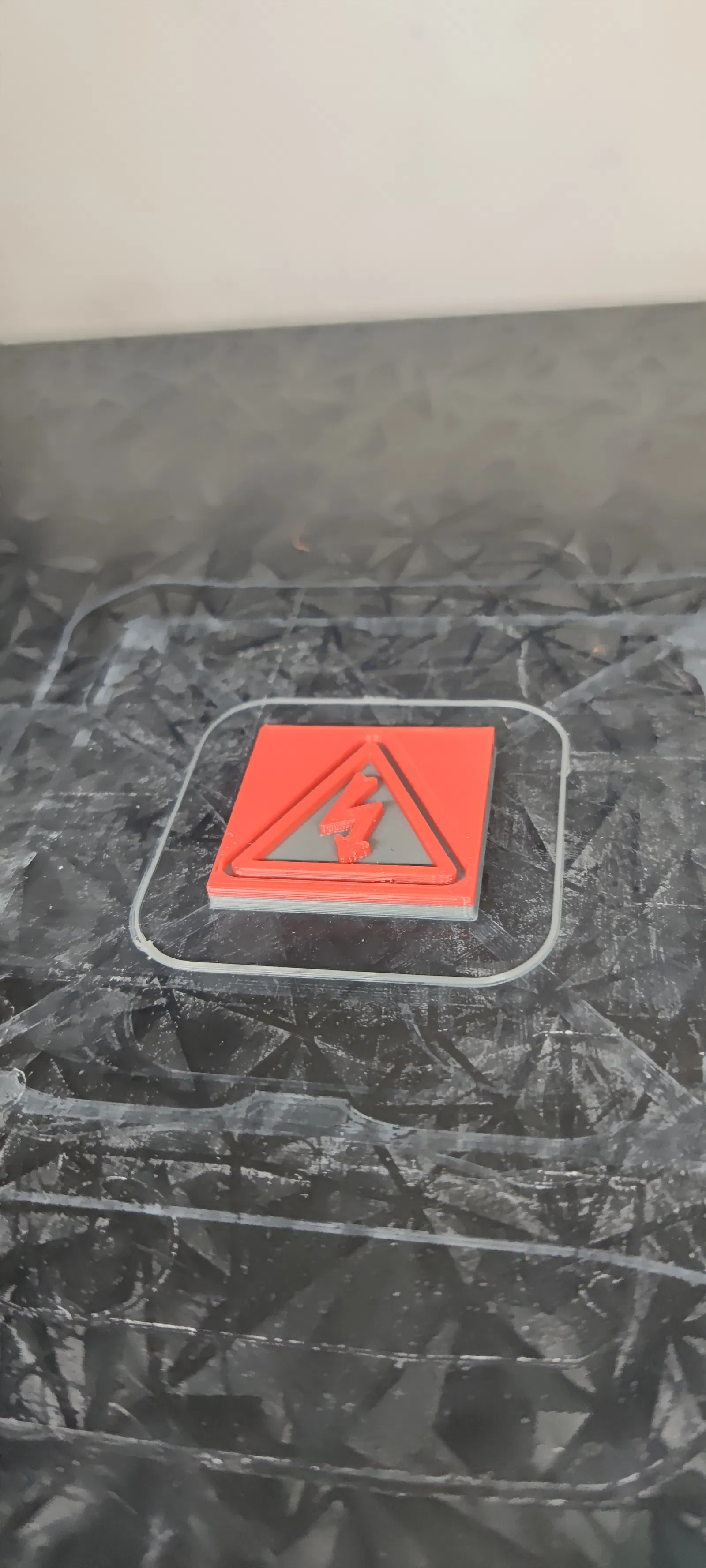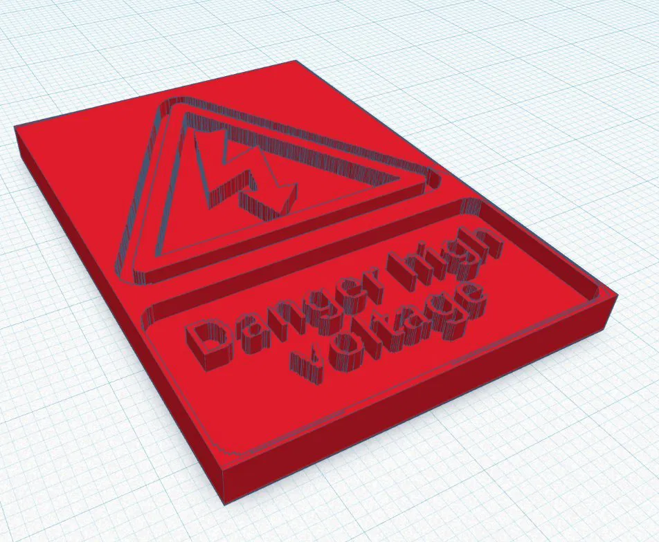 Biểu Tượng Nguy Hiểm Điện Áp Cao. Một file STL điện áp cao có thể được thêm vào mô hình của bạn khi cần. Có một phiên bản không có chữ để dễ in hơn. Điều chỉnh kích thước và thay đổi màu bằng M600 trong GCode.