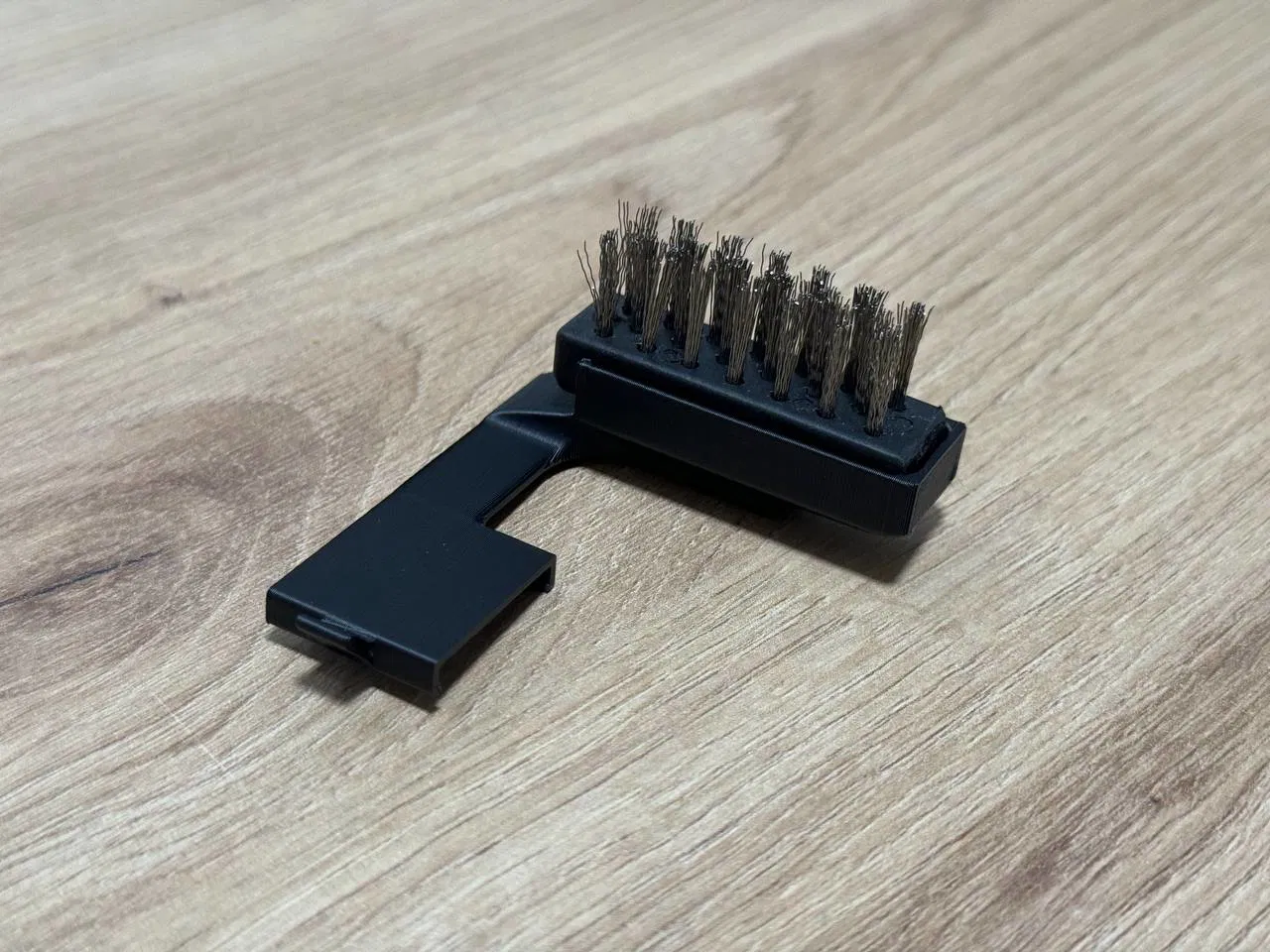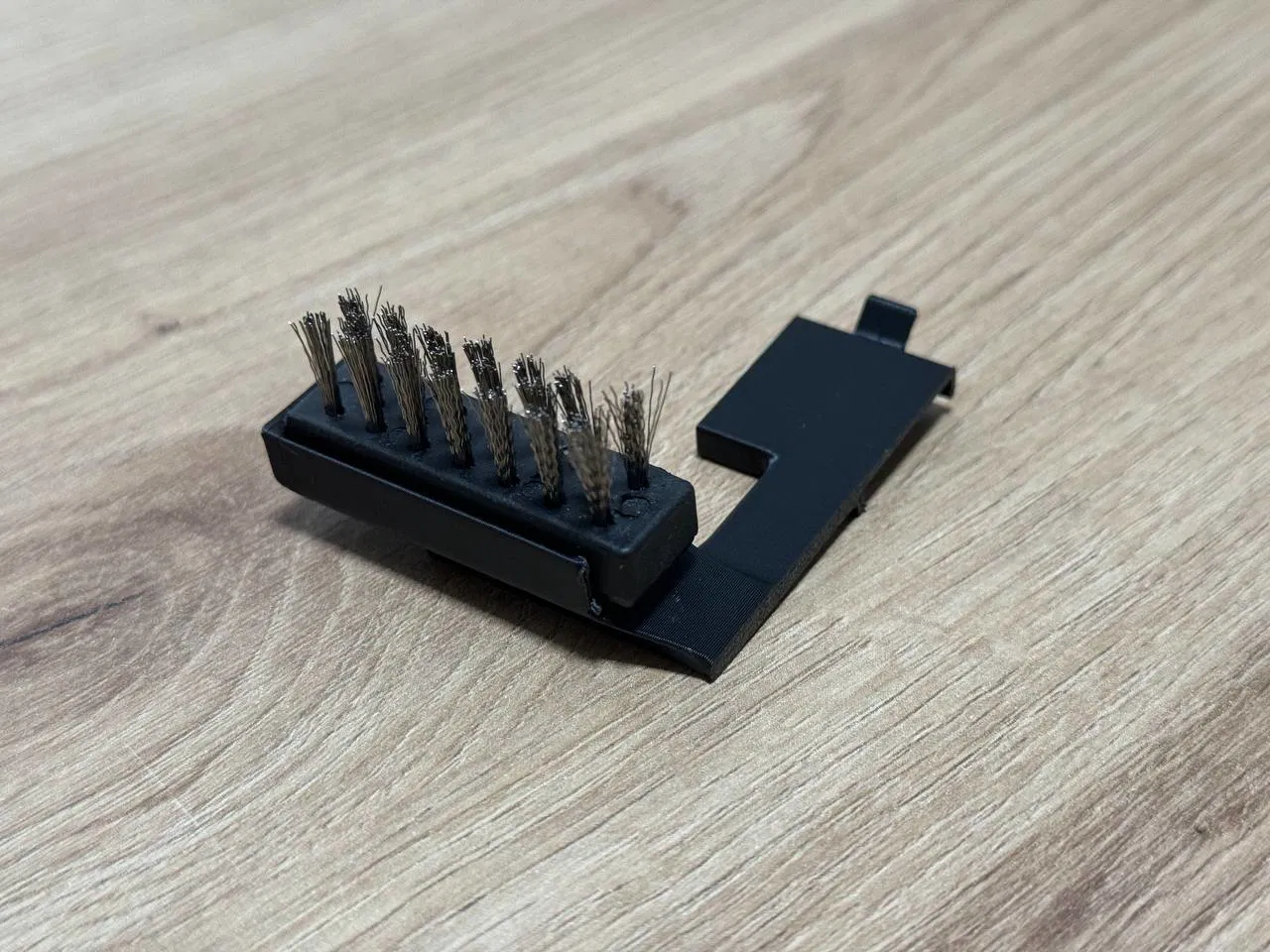 Trong trường hợp của tôi, đầu cọ lớn hơn miệng lỗ, nên tôi quyết định cắt bỏ gờ bên trong bằng kìm để nó khớp hoàn hảo. Tôi có thể thiết kế nó dài hơn, nhưng cái này hoạt động tốt, và nó được cố định chắc chắn bằng keo nến.