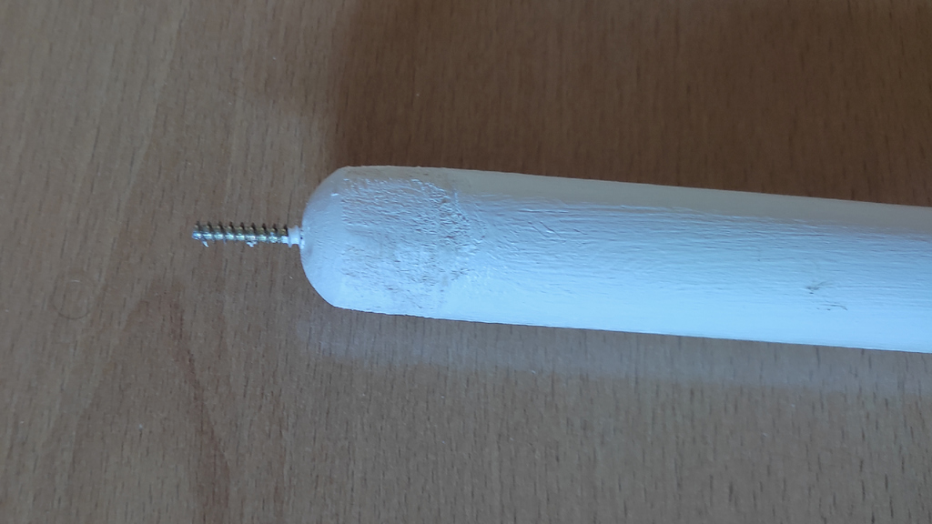 Gắn một con ốc vào cây gậy gỗ, cắt đầu ốc, thử vặn xoay viên đá quý vào trước khi in phần đầu cây trượng.