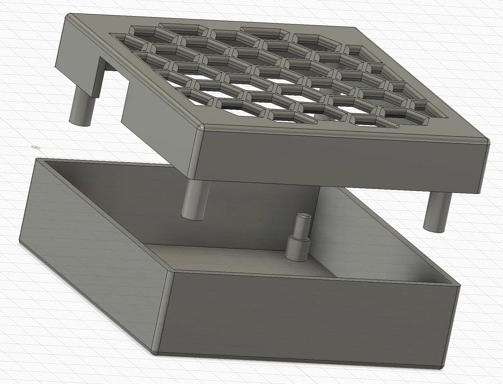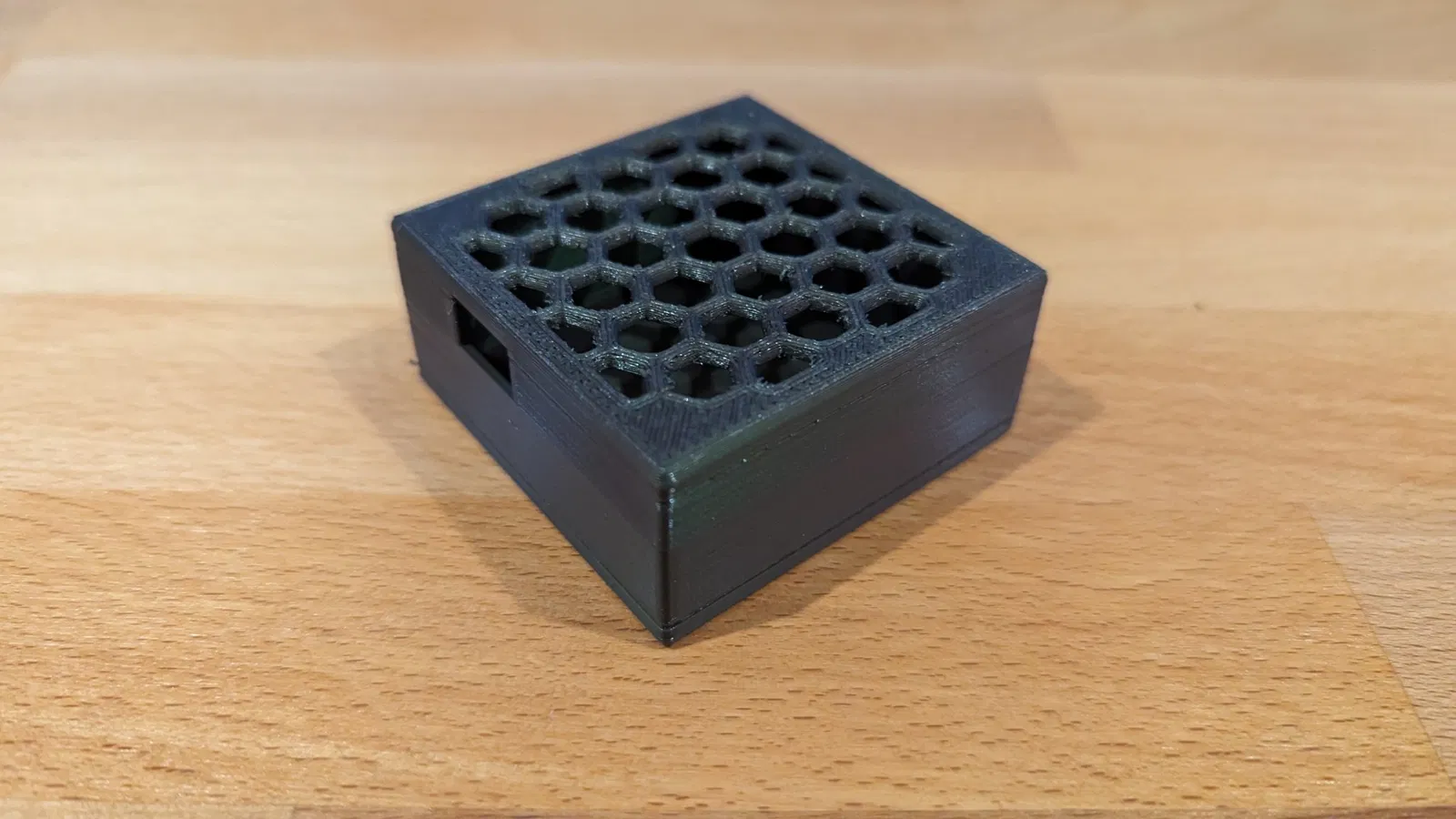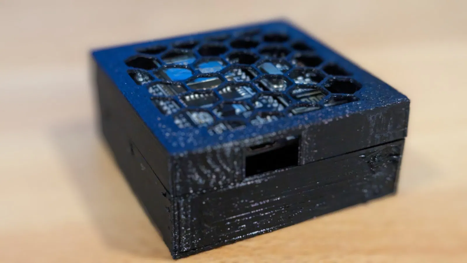 Vỏ xanh đậm được in bằng PLA với tường 1,5mm. PLA không được khuyến nghị. Các chân mỏng đã bị gãy. Với PETG thì không có vấn đề này.