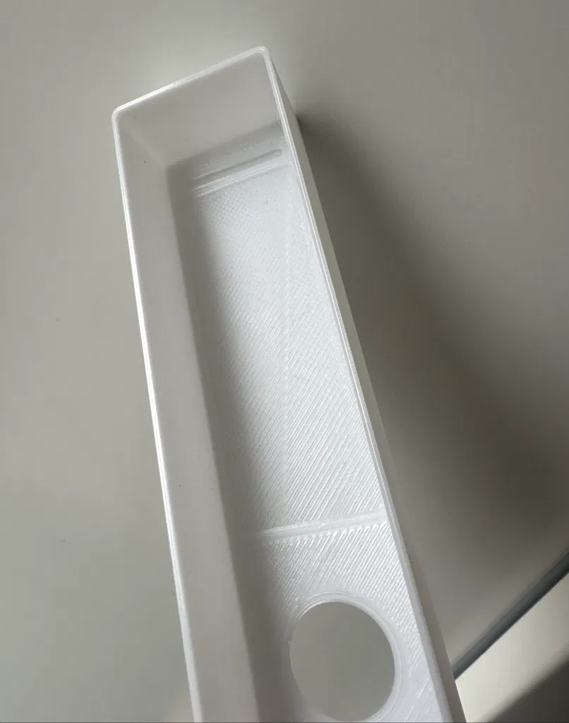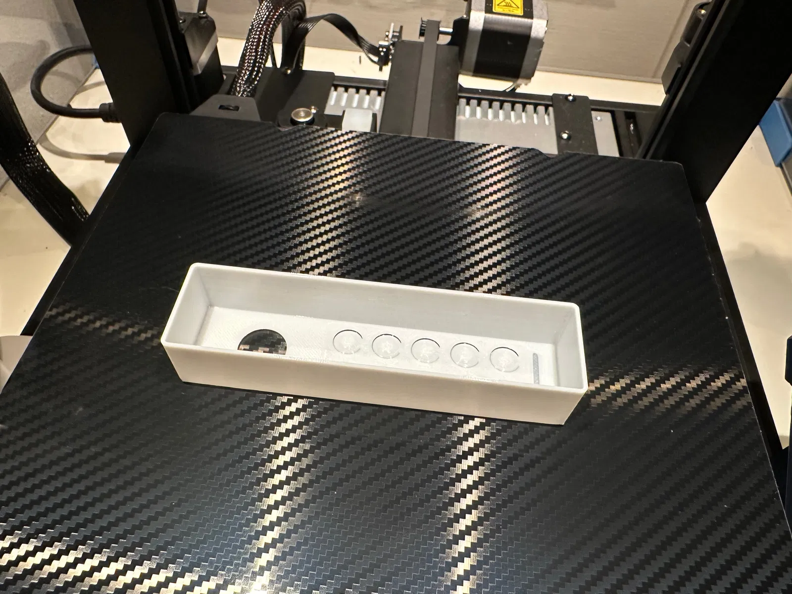 Thế là tui thiết kế ra một cái ốp che hết cái thiết bị, trừ cái cảm biến vân tay, và có khoét lỗ bên trong cho cái chỗ có mấy cái nút bấm với đèn LED. Như vậy thì mấy cái nút bấm nó không bị cái ốp đè vô, còn đèn LED thì nó vẫn sáng xuyên qua cái ốp vì nó chỉ bị che bởi 0.2mm nhựa thôi. Nó fit khít luôn, gắn vô là dính chứ không cần keo hay gì hết.