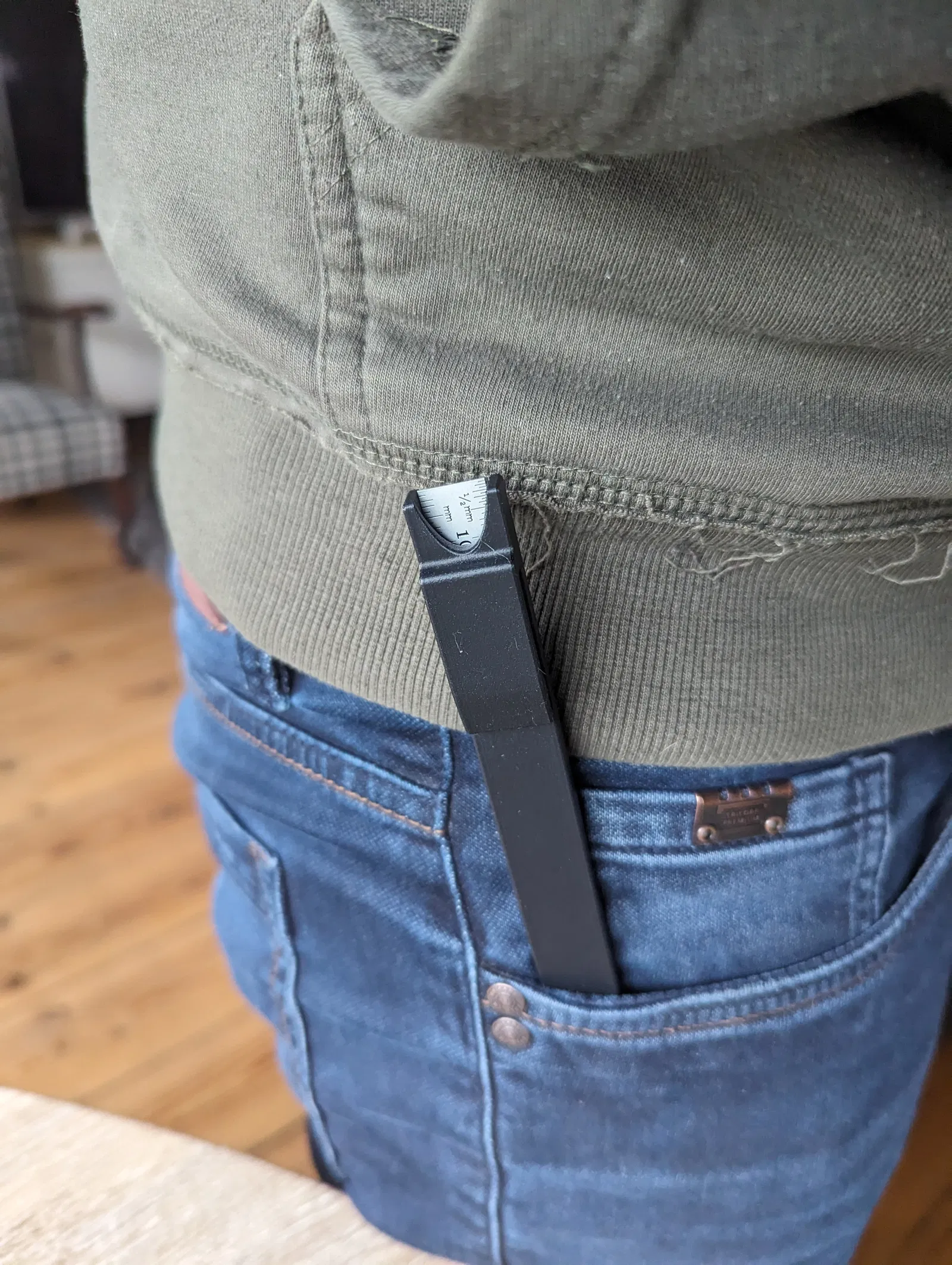 Một vỏ bọc in 3D bỏ túi cho thước kim loại, dựa trên video này từ Jer Schmidt: