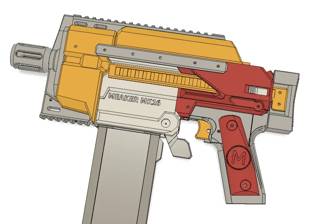 Hỗ trợ không cần thiết trong hầu hết các trường hợp, nhưng được khuyến nghị cho khay pin, tay cầm và có thể là các mảnh lồng flywheel phía trước. Magwell nên được in ngược lại với hỗ trợ từ đế.