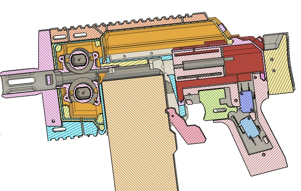Các bản cập nhật và cải tiến dự kiến sẽ có trong tương lai, nhưng các bộ phận cơ bản (magwell, tay cầm, vỏ solenoid, báng súng, phía trước) đã được thử nghiệm và hoạt động như mong đợi. Phiên bản hiện tại được thiết lập cho chế độ bán tự động 'thủ công' với hai công tắc, nhưng đối với những người biết cách vận hành solenoid với một công tắc, thiết lập hiện tại nên hoạt động và cung cấp tùy chọn.