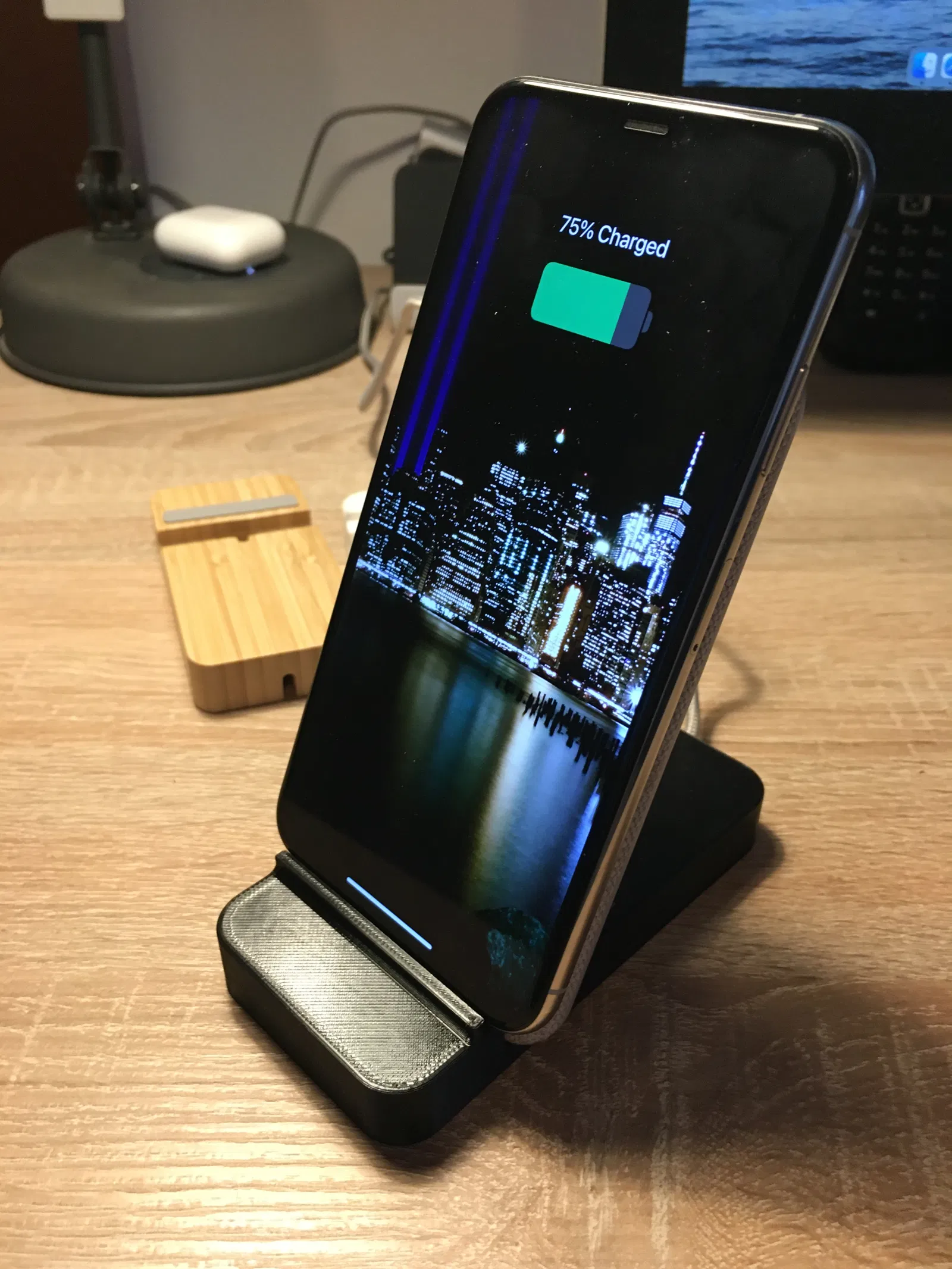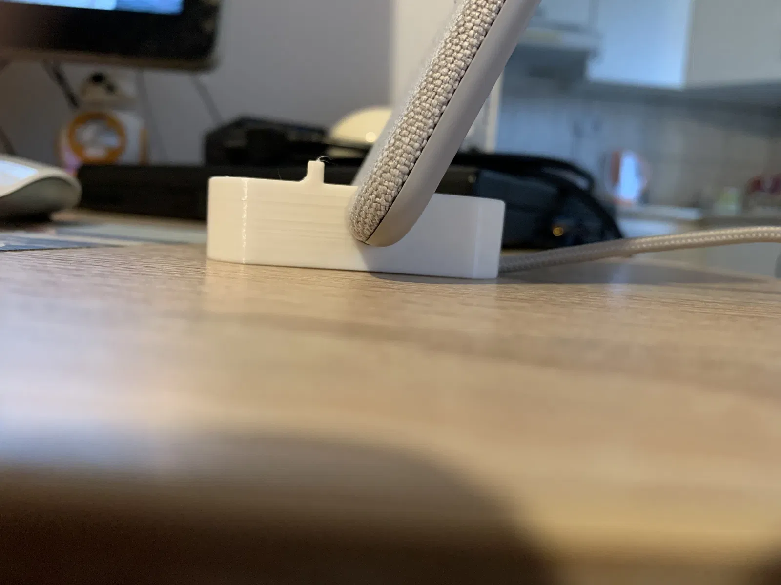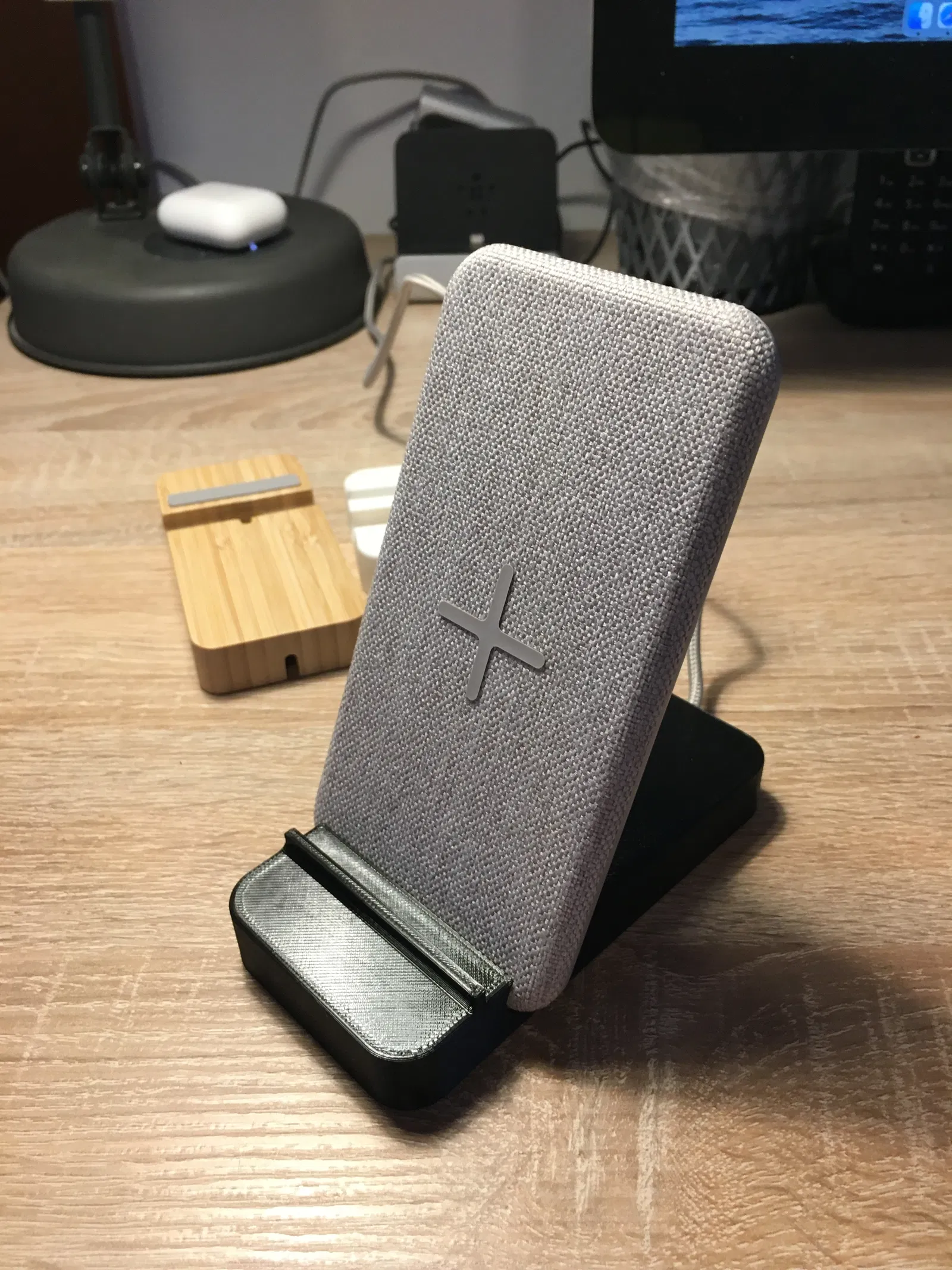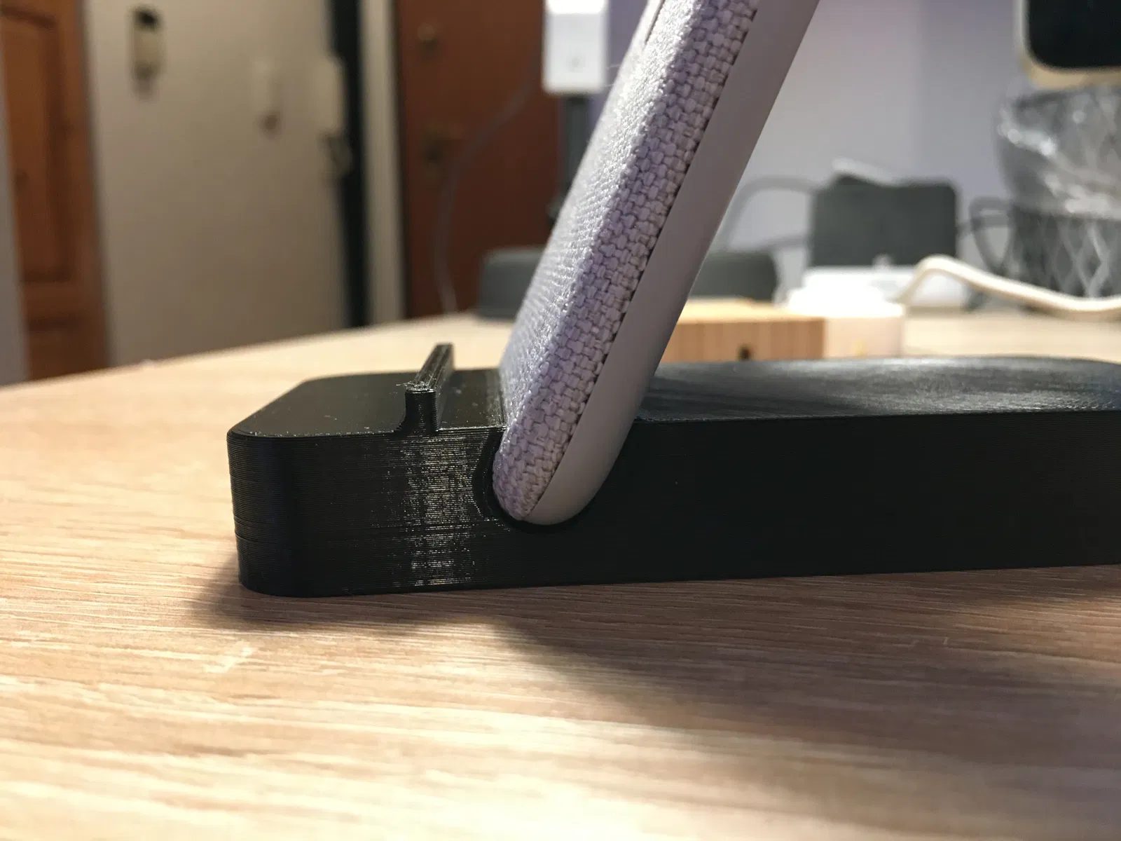 Đây là phiên bản "tốt hơn" của đế sạc không dây NORDMÄRKE của IKEA. Điện thoại của tôi hay bị rớt khỏi đế sạc gốc, vì cái miếng cao su nhỏ xíu, không giữ được điện thoại trên đế khi sạc mà ai đó muốn xài. Vì vậy, tôi đã thiết kế một cái mới, giữ cho iPhone Xs Max của tôi an toàn.