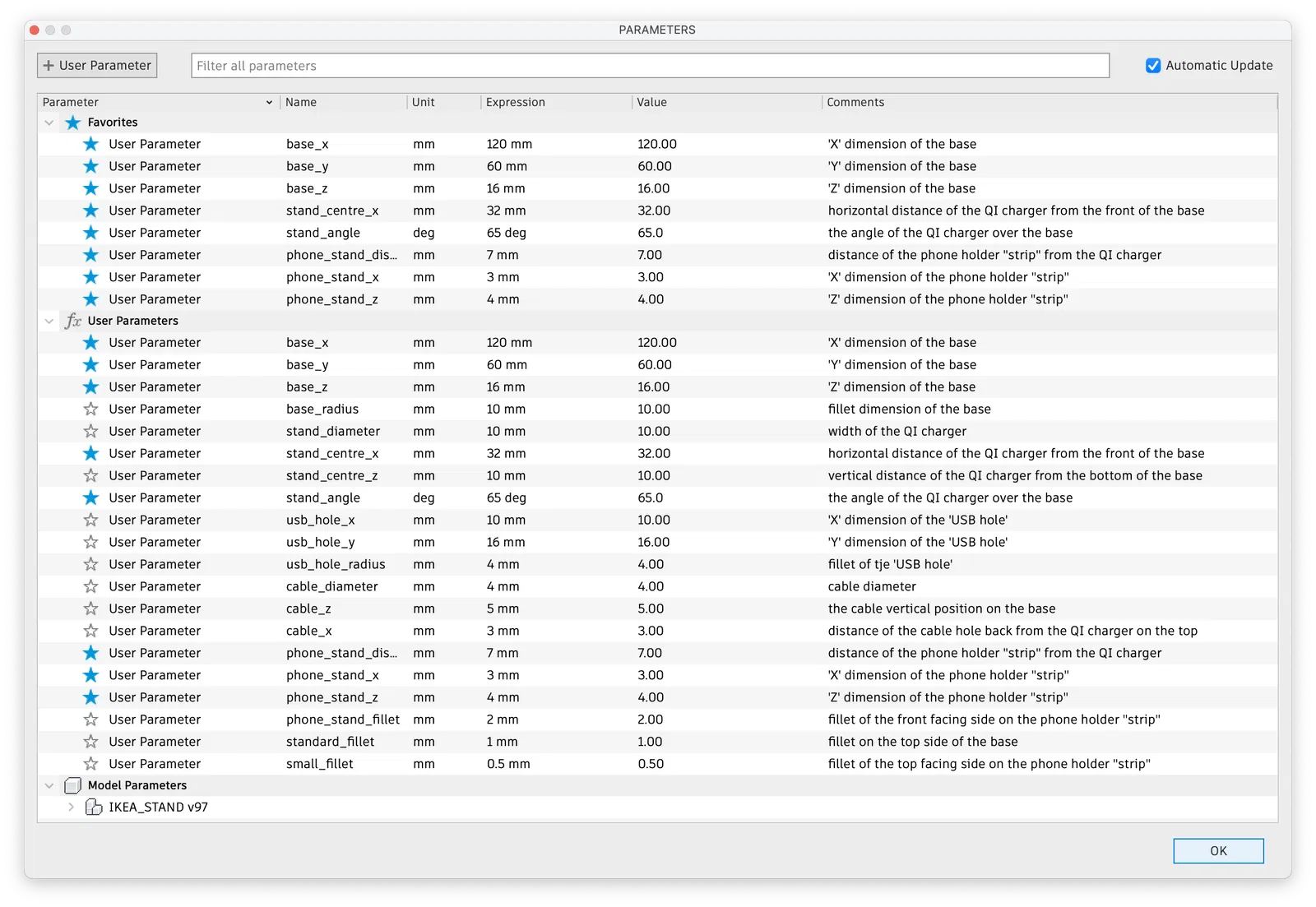 Tôi cũng đã tải lên file f3d gốc từ Fusion 360, vì tôi đã đặt gần như tất cả các kích thước dưới dạng tham số người dùng có thể thay đổi để dễ dàng tùy chỉnh hơn.