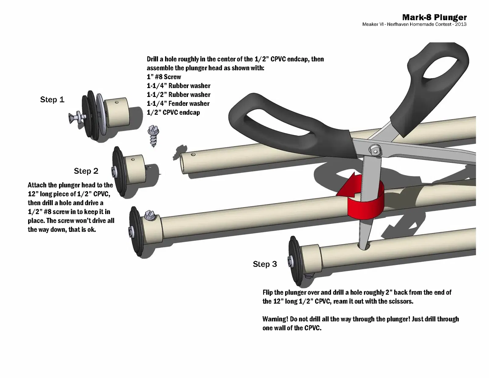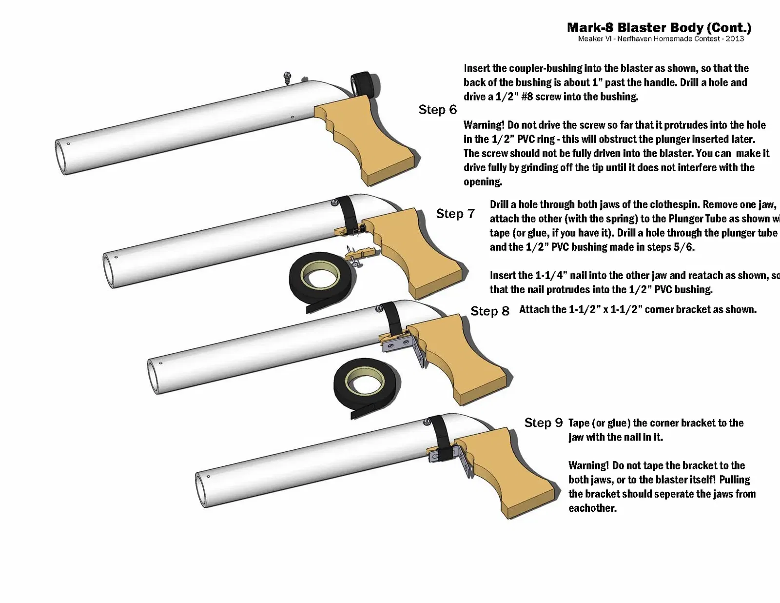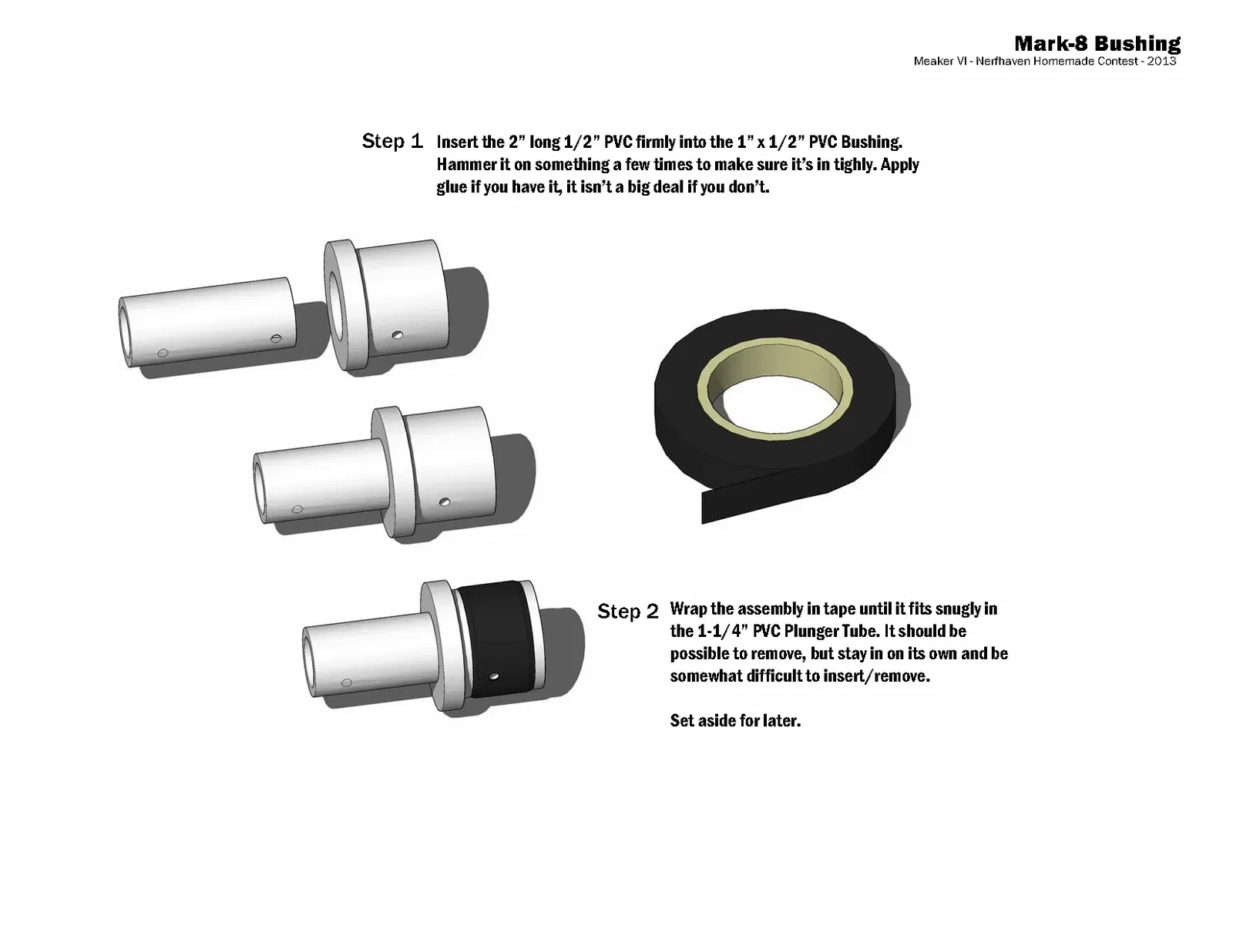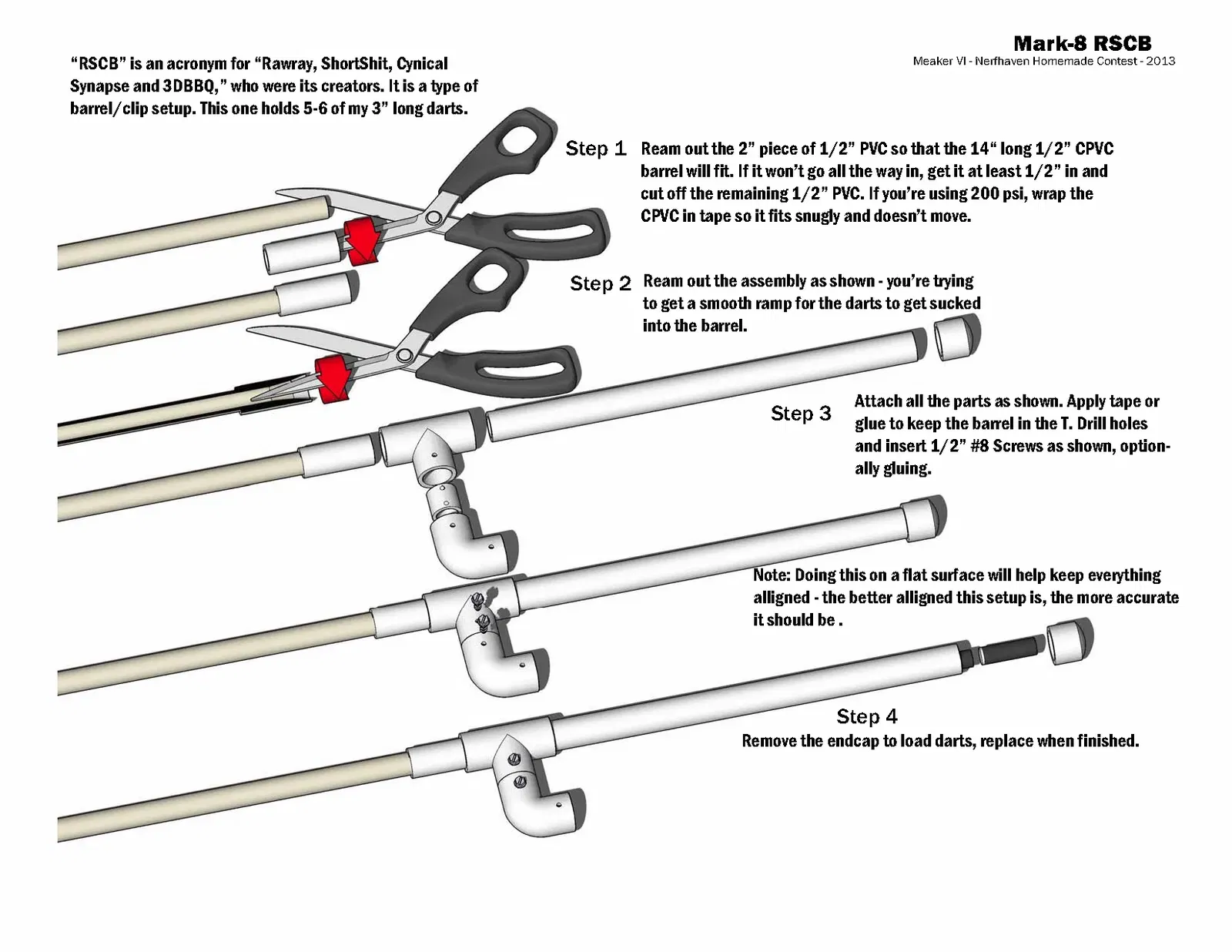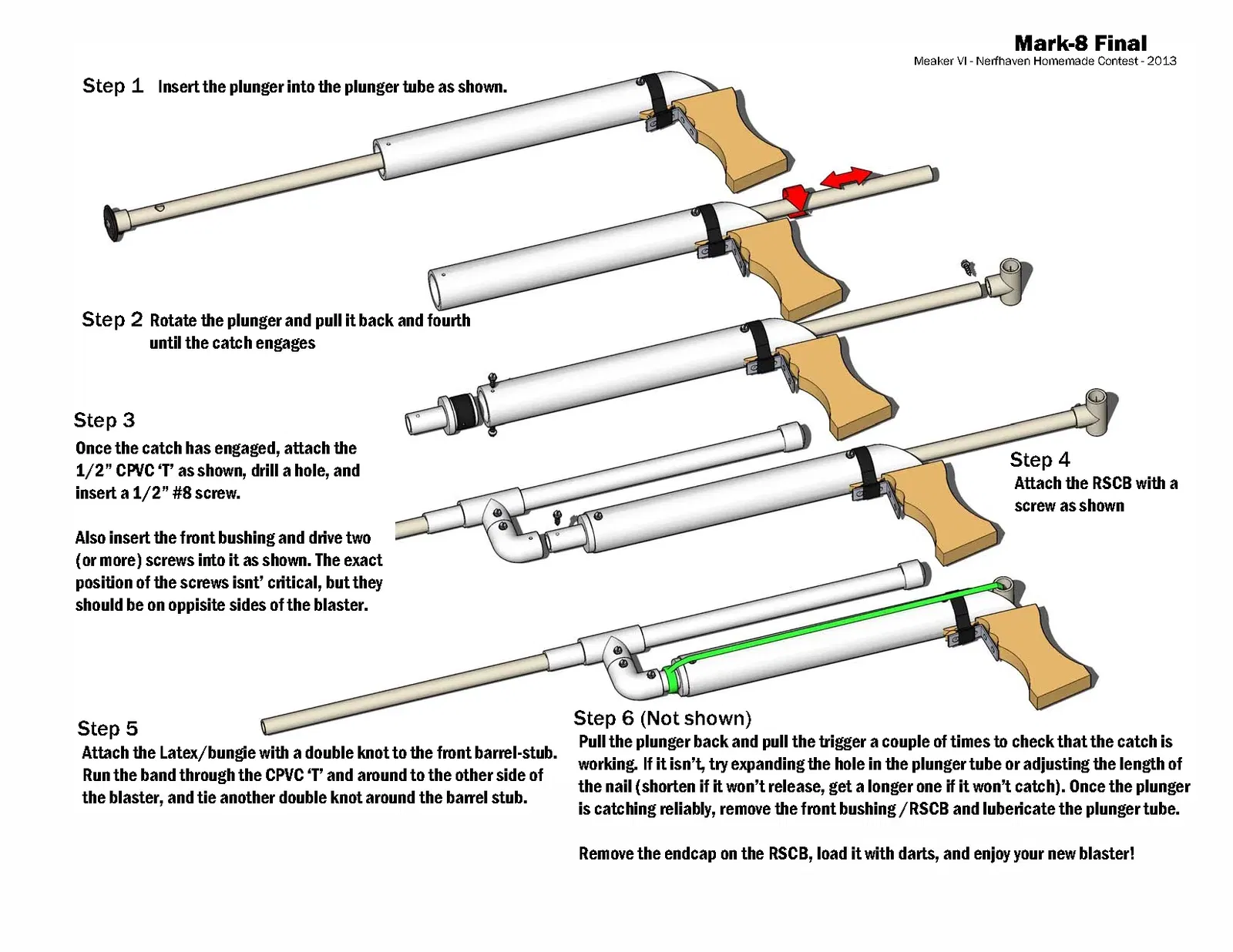 Hướng dẫn trong các tệp; đây là một khẩu súng kiểu OG-Nerf-internet-community được xây dựng từ các ống ngẫu nhiên và các bộ phận cửa hàng phần cứng. Không có tệp in được, chỉ để tham khảo.