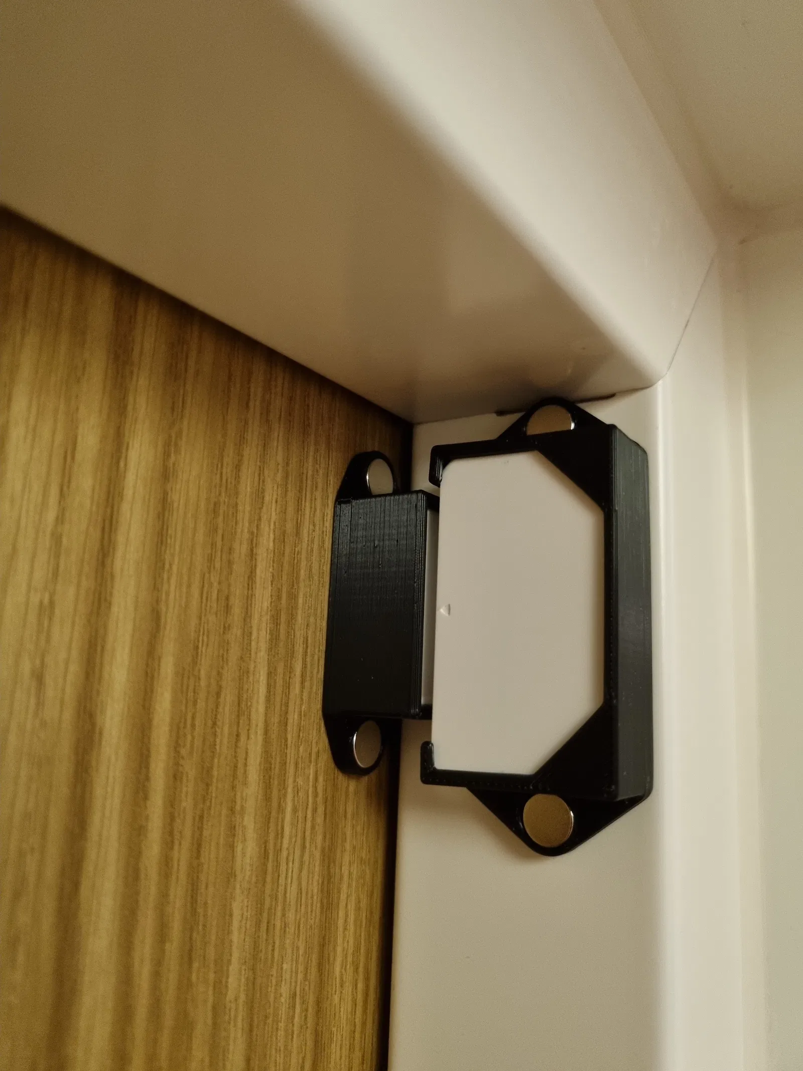Cửa an ninh nhà em với khung cửa đều làm bằng kim loại hết. Em có thiết kế cái pát nhỏ này cho cảm biến cửa Sonoff SNZB-04 để gắn lên cửa và khung cửa mà không ảnh hưởng gì tới cửa hết nha.
